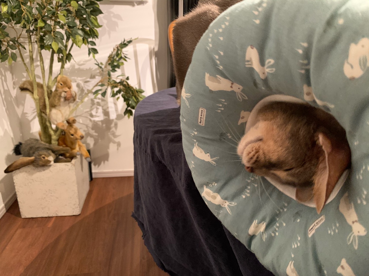 シーツをかけたいと何度覗きに行っても、りす子が上に乗っていてかけられない。