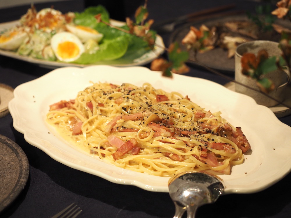 サーモンに合わせたのは、カルボナーラ。