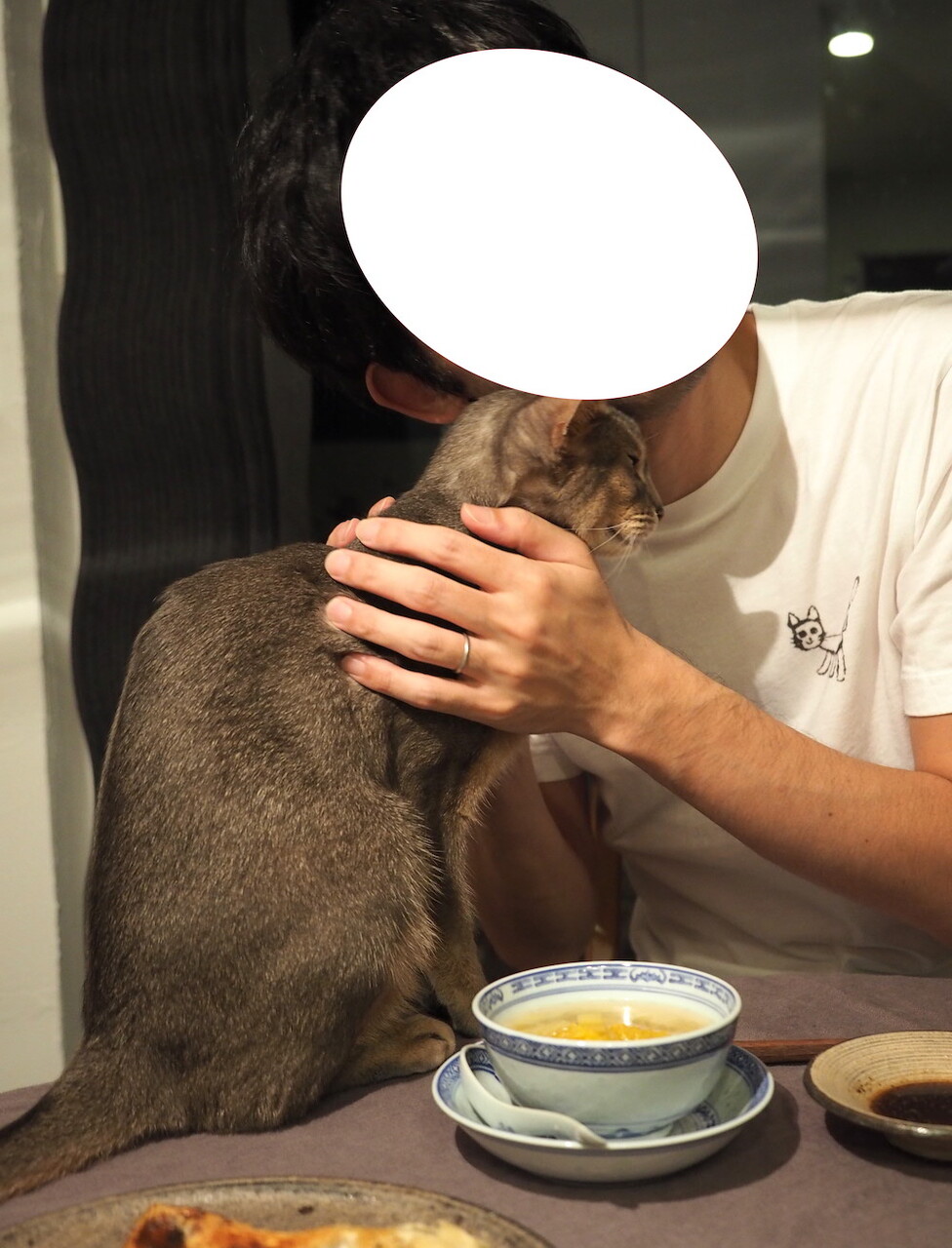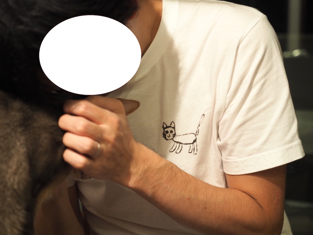 自作のねこTを着て、飼い猫を撫でまくる。