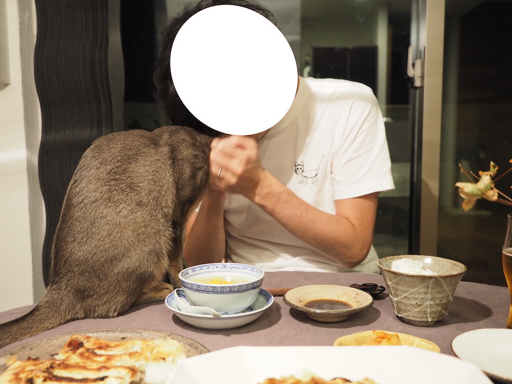 こちらは、広くなったテーブルに悠然とやってきたぼくちん。