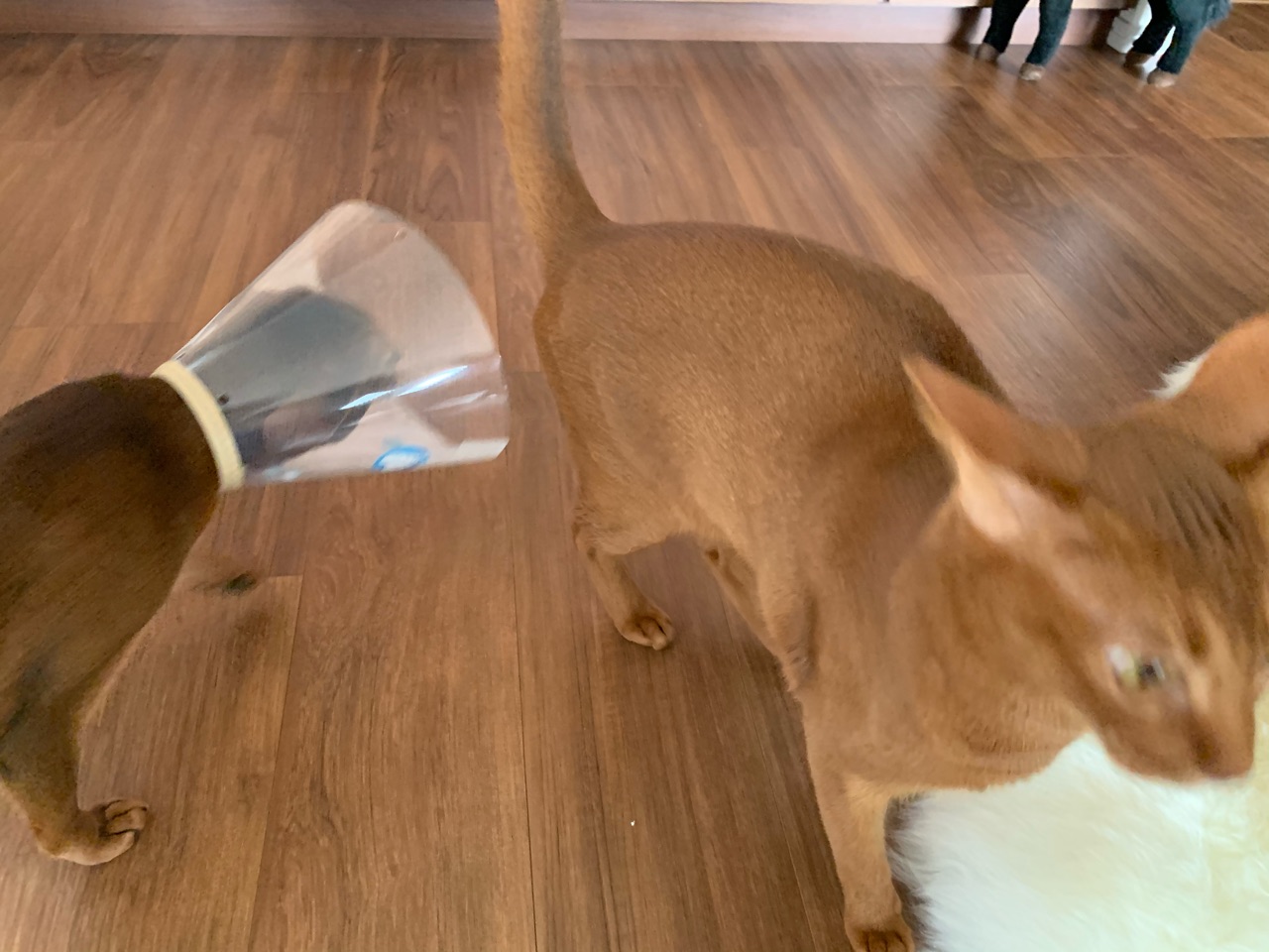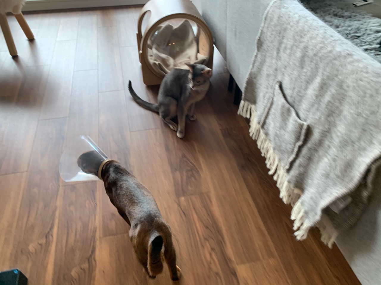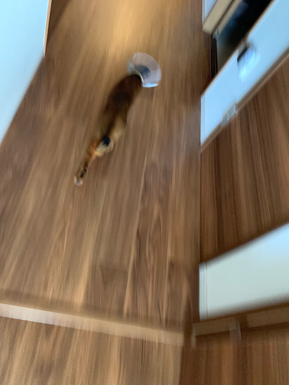 カラーに慣れないのか、走って気を紛らせようとするりす子。