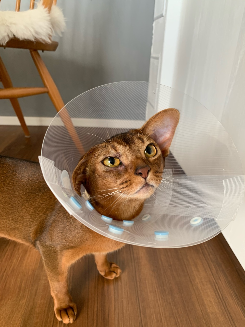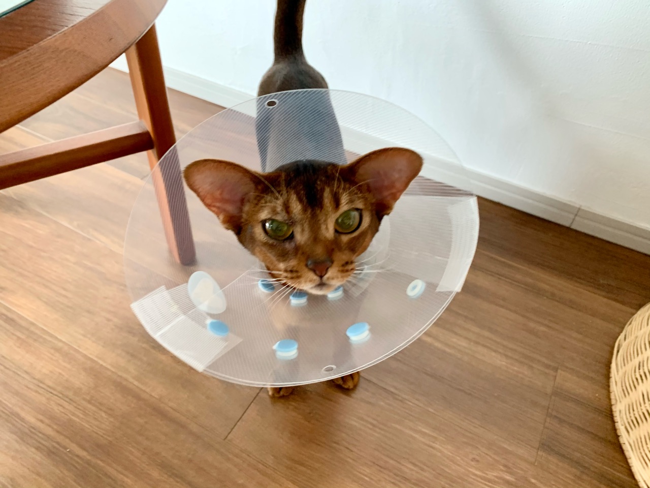 掻くことで腫れてしまうので、掻かないようにと、狭めのエリザベスカラーも処方されました。
