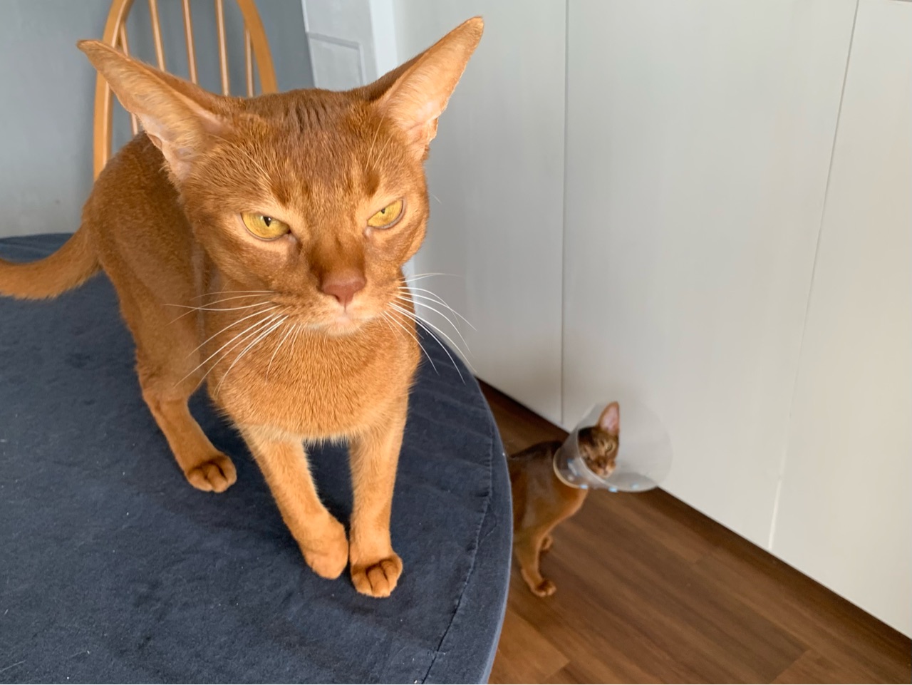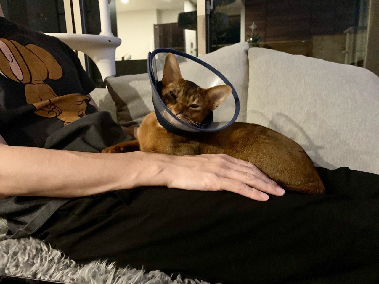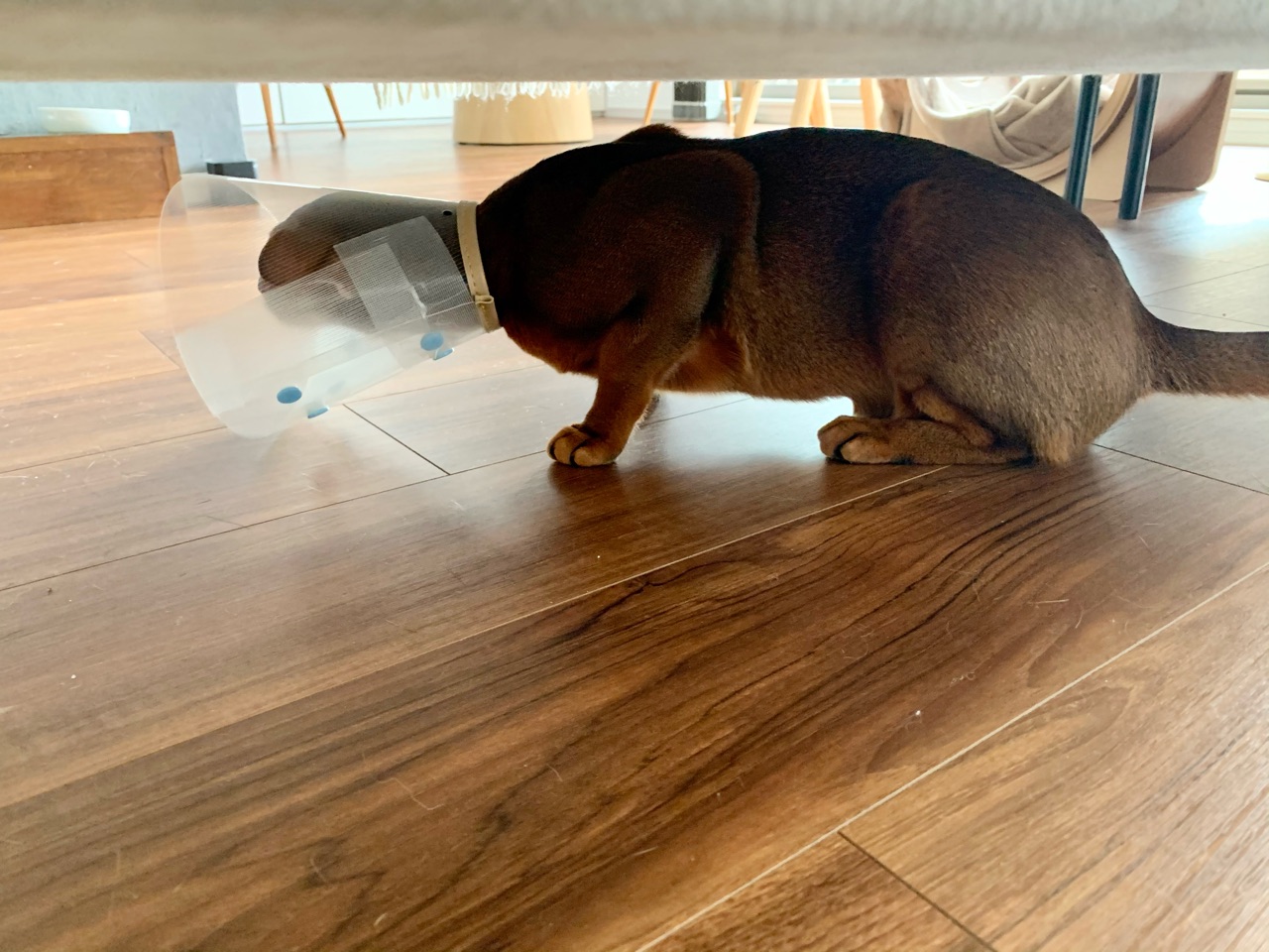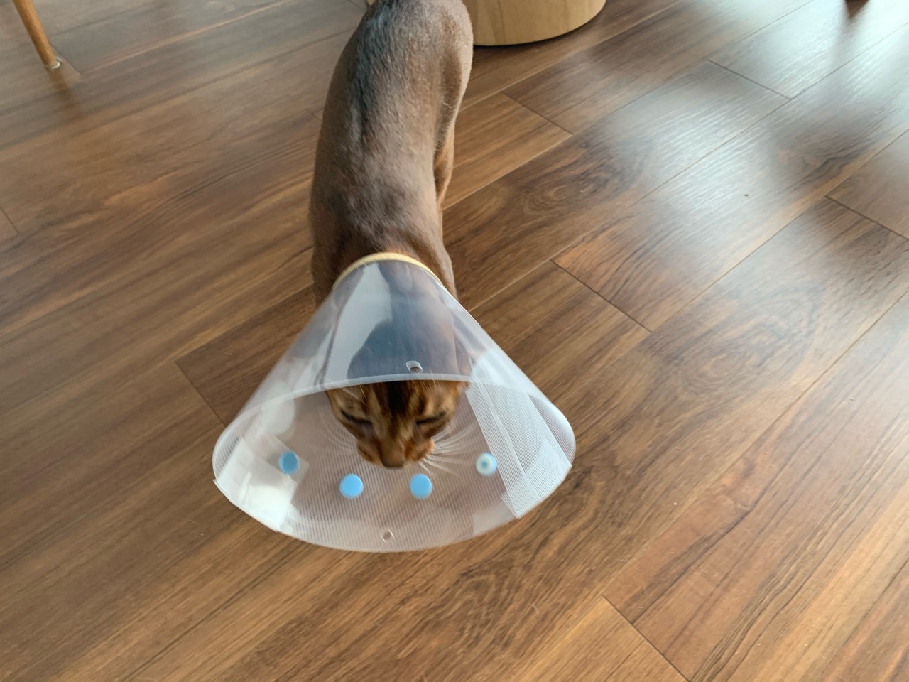 パズーカーのようなカラーを付けて、帰ってきたりす。
