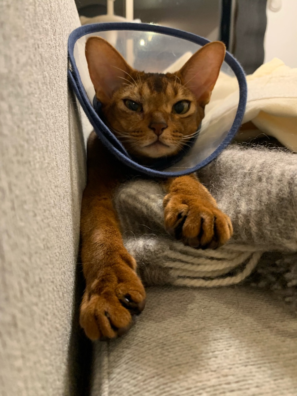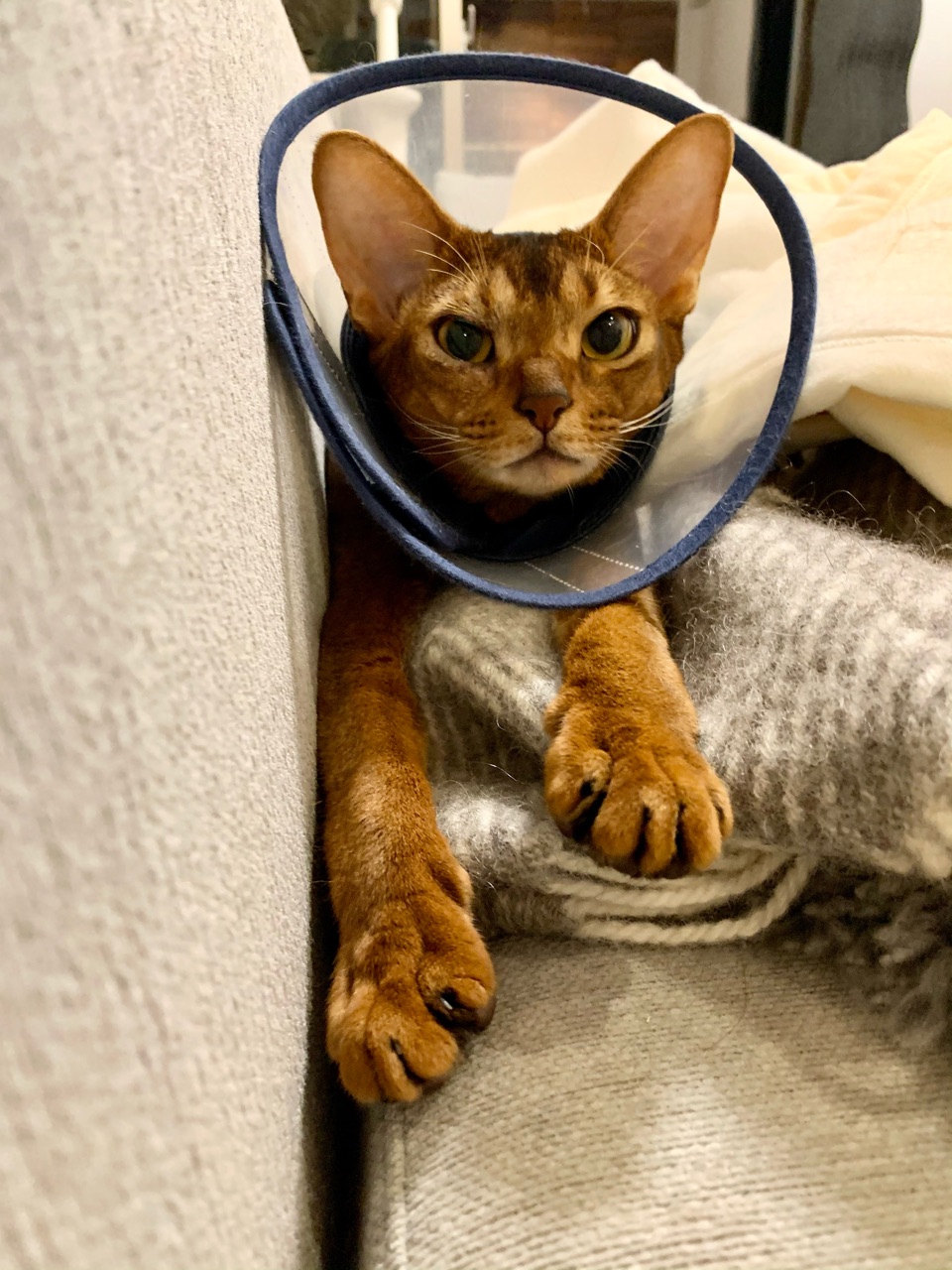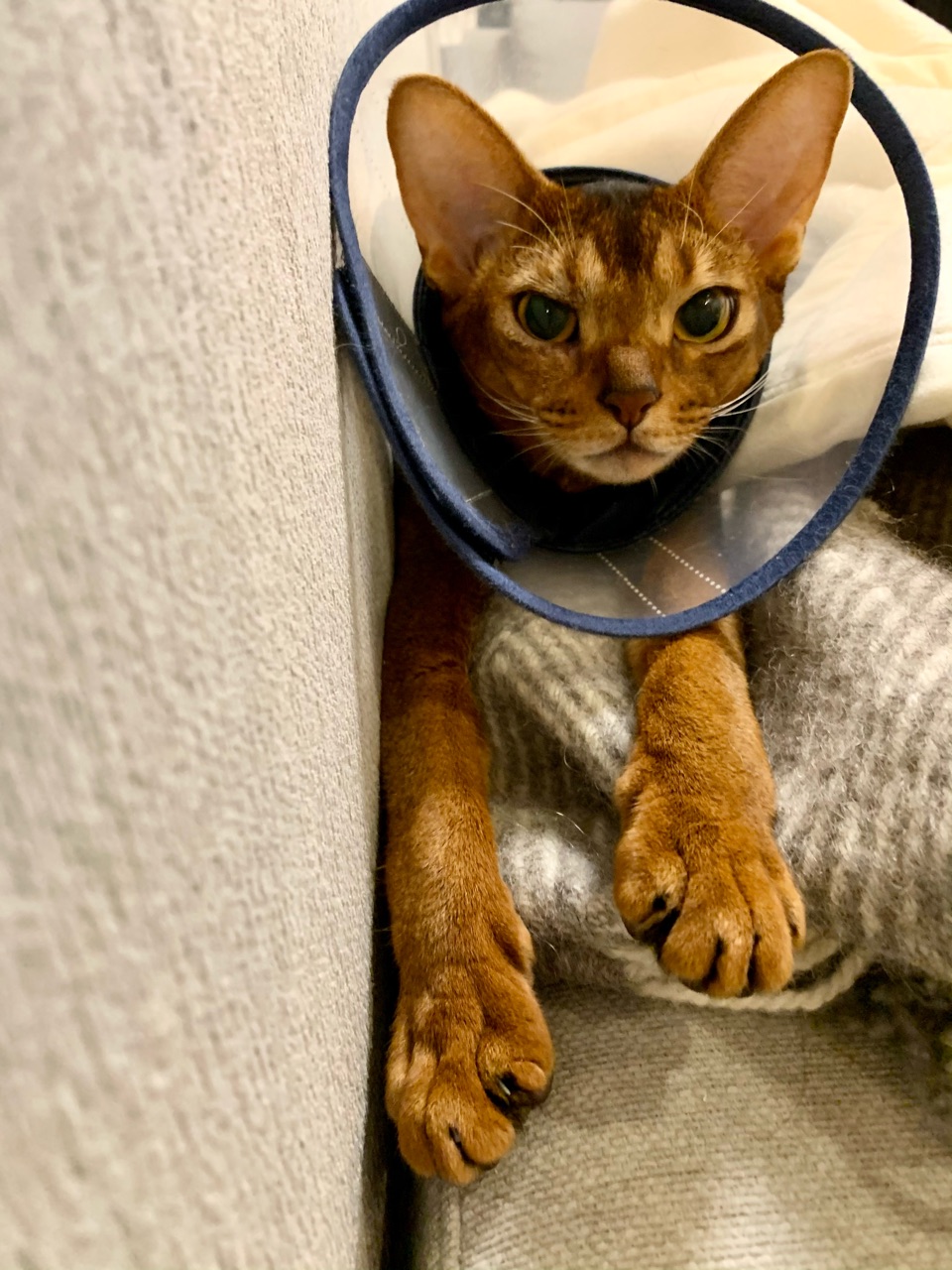 ソファにパパの足が伸びるのちゃんと知ってて待ってたのかな~??(それにしてもパパ、結束バンドて🤣)