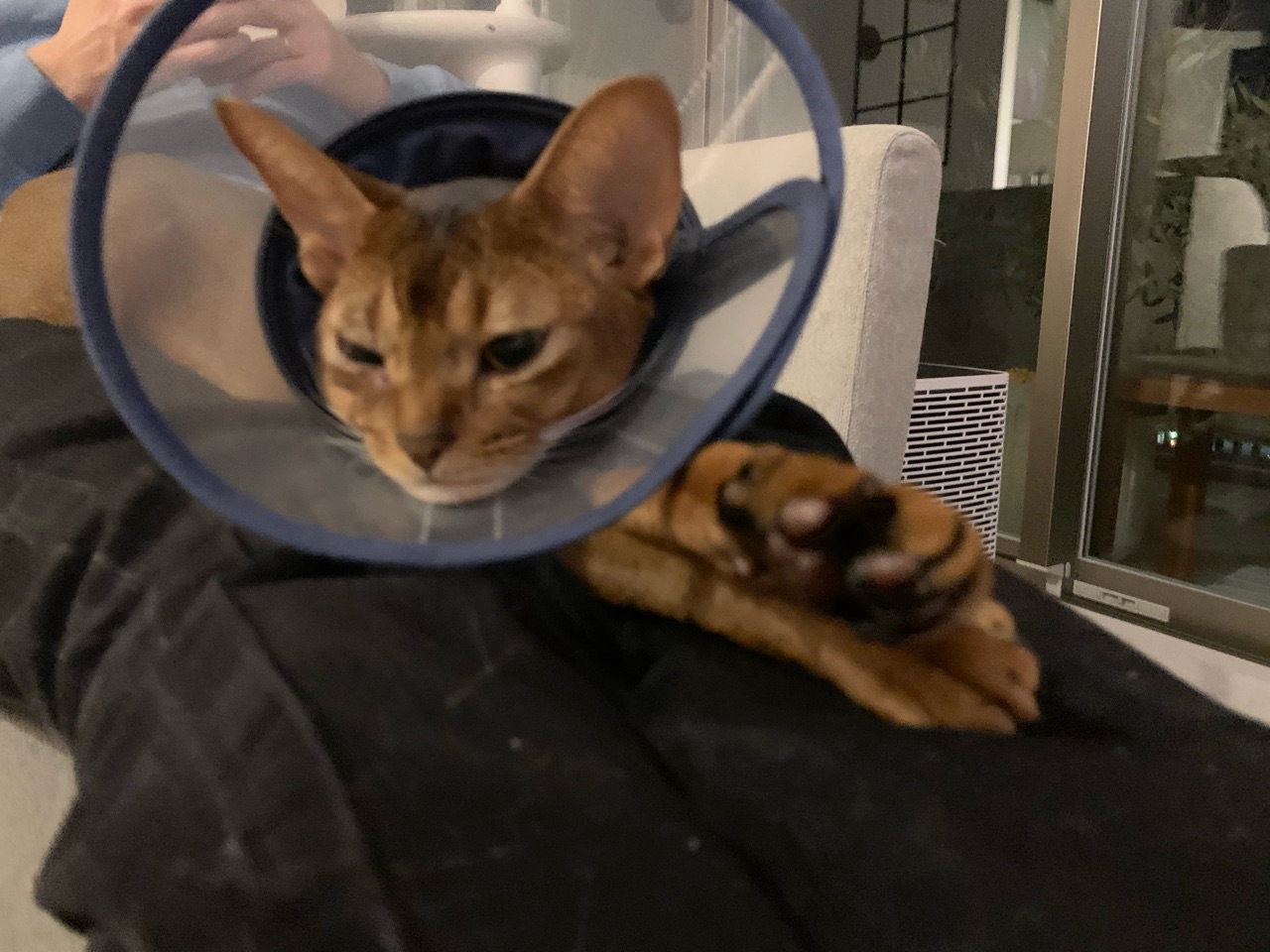 今、昨日に引き続き、パパの足の上で伸びてます(*´ω`*)