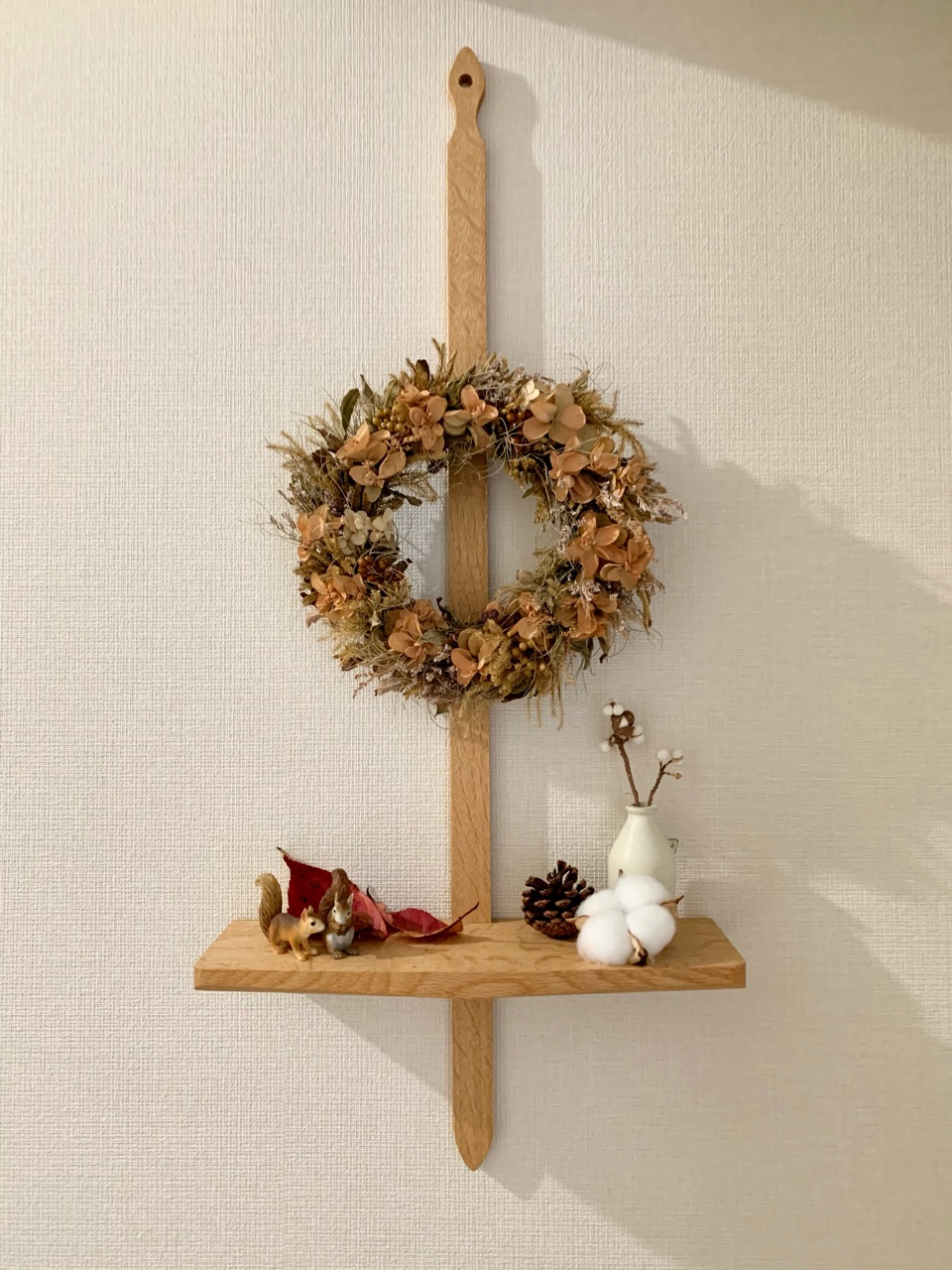 以前、リビングの壁に飾っていた飾り棚を、寝室に移動しました。