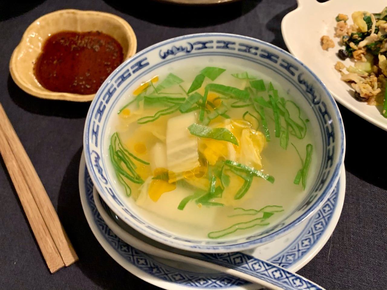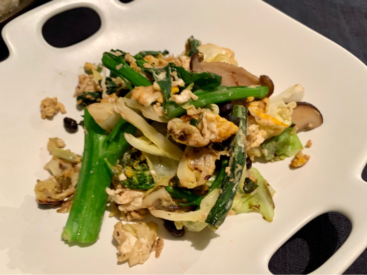キャベツとアスパラ菜と椎茸の豆豉炒め。