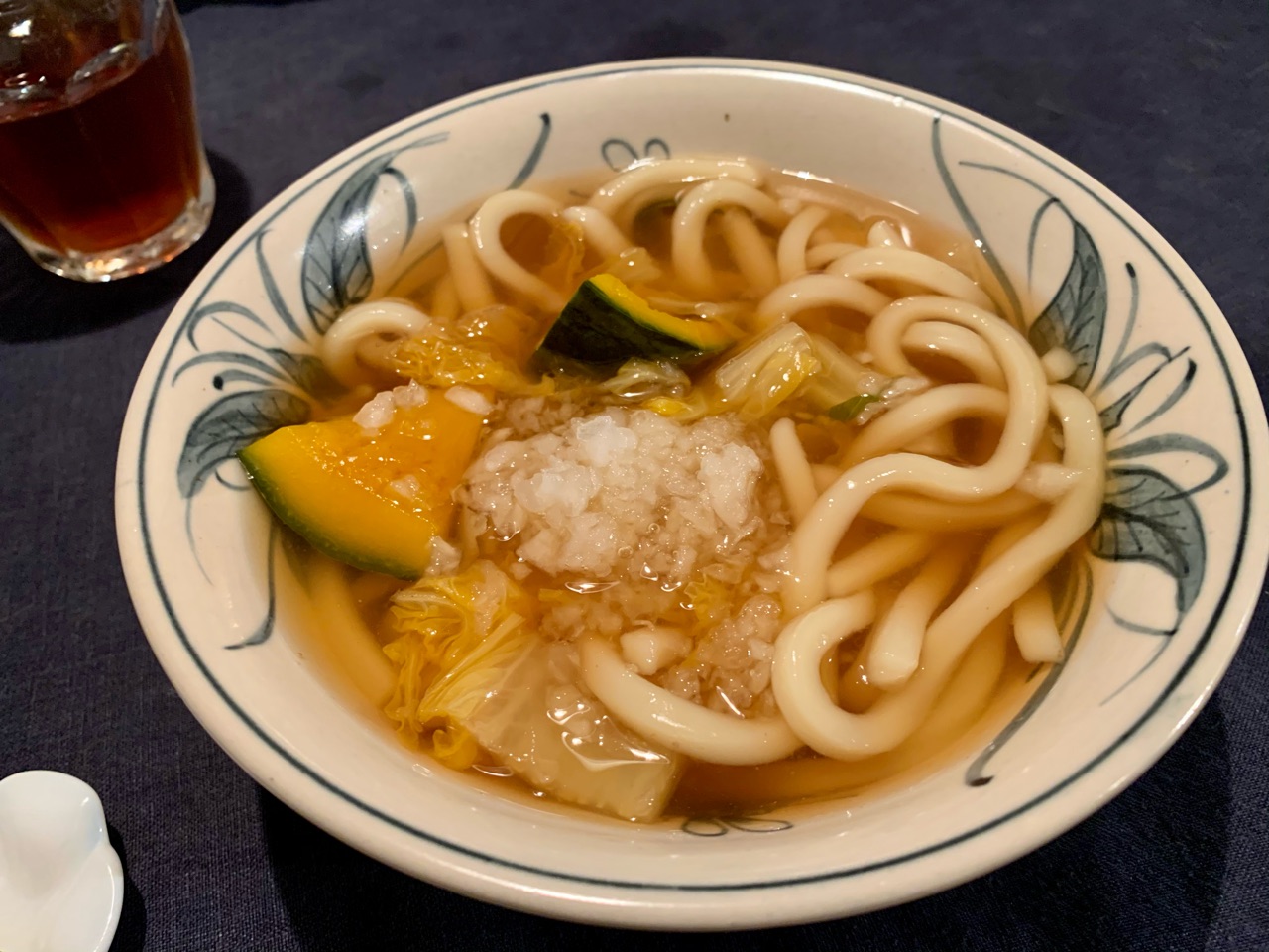 クタクタに煮たうどんと、かぼちゃと、鬼おろし。