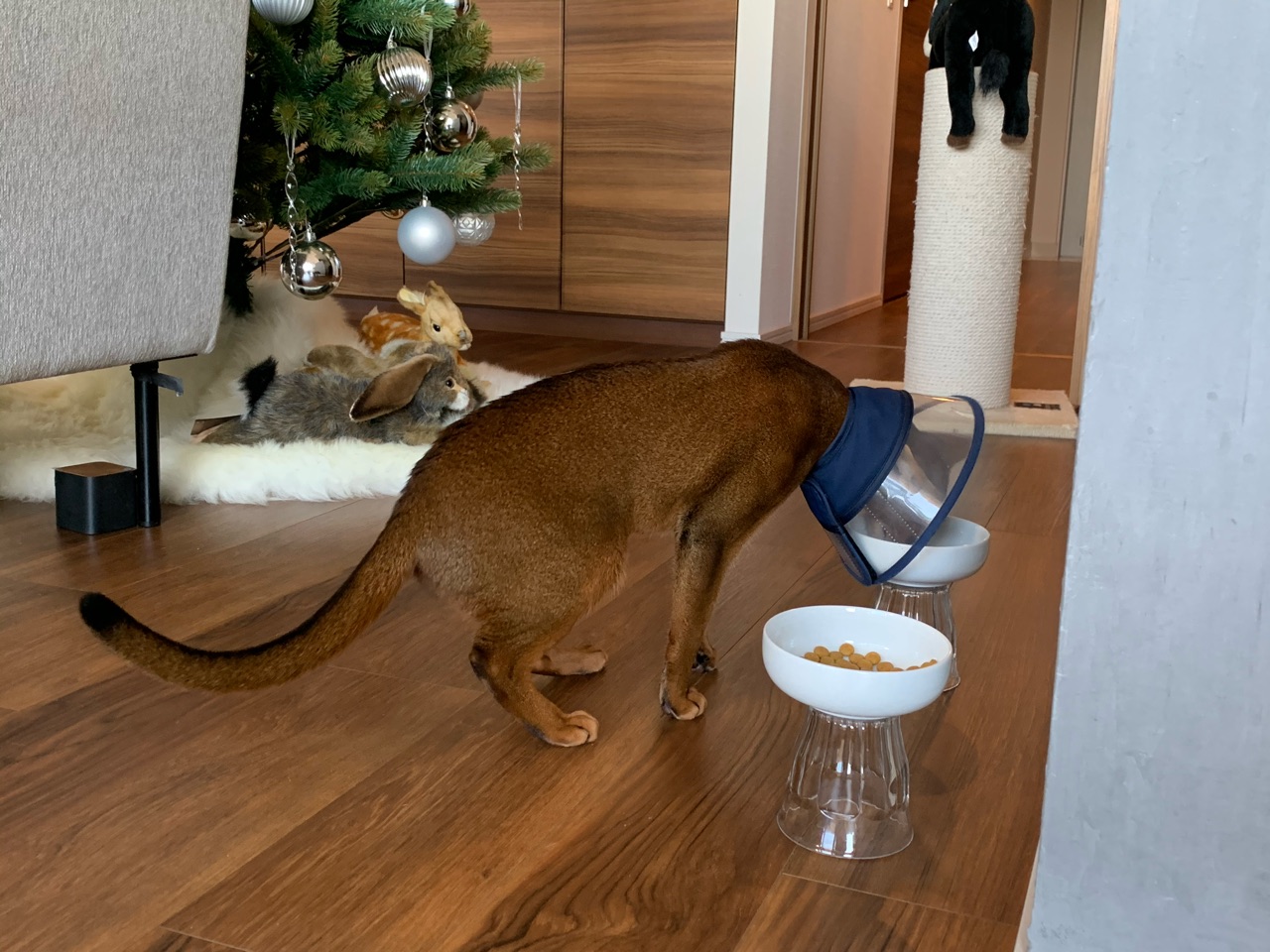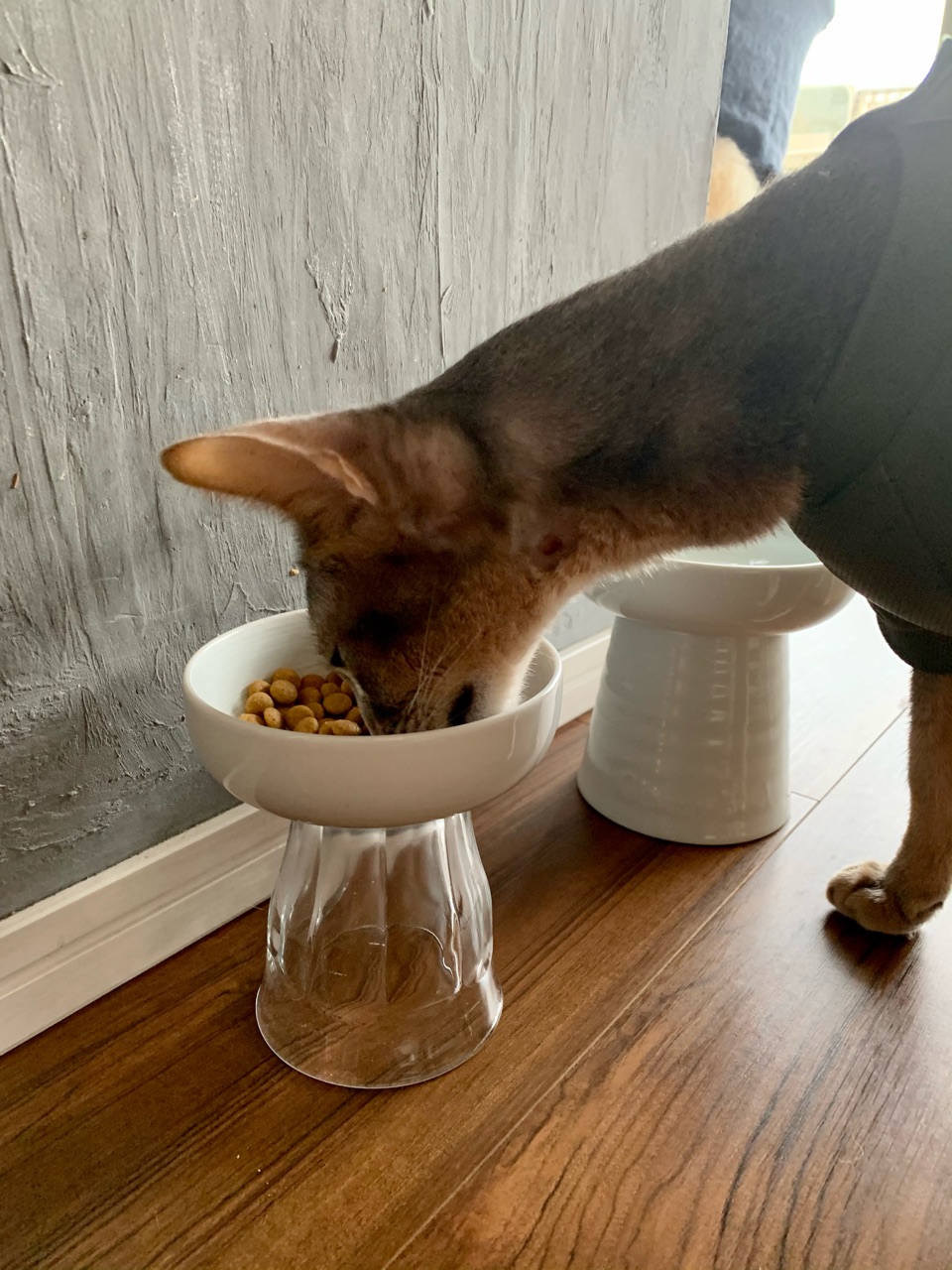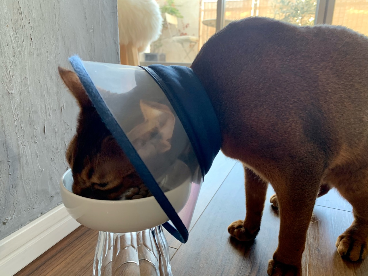 台に邪魔されることなく、フード入れ部分がカラーの中に入り込んで食べやすそうです♪