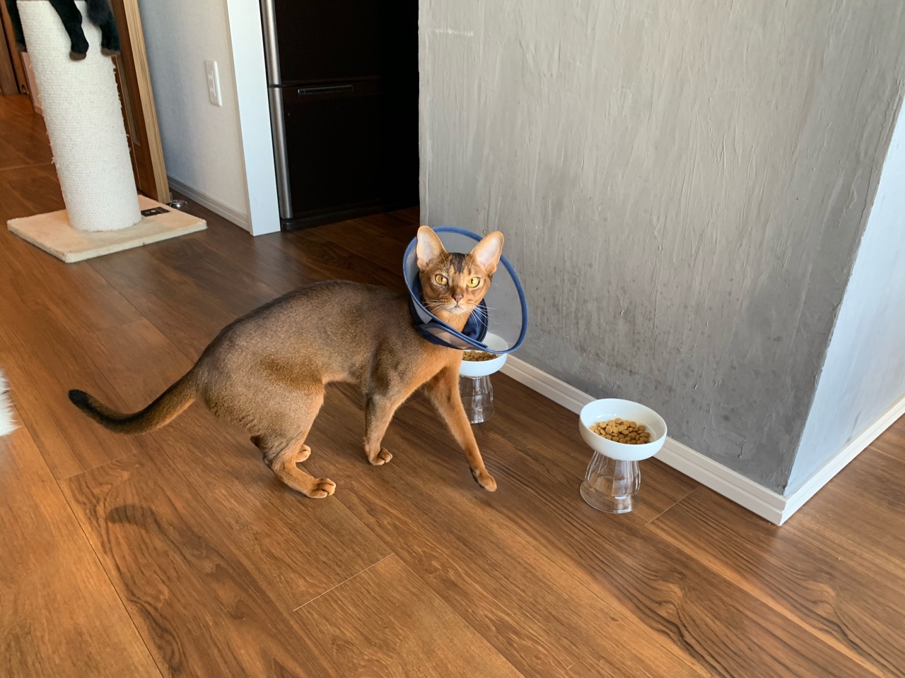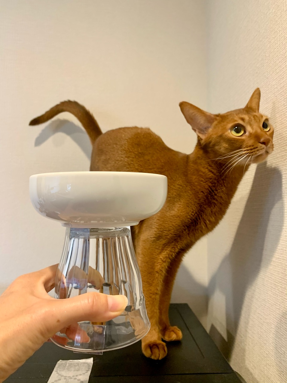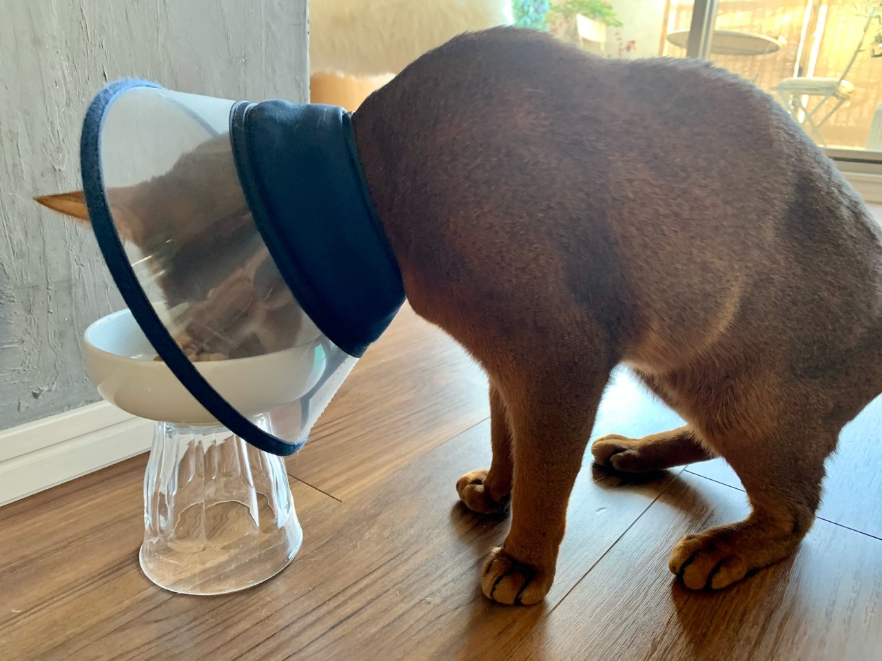 りす子が、お目目の保護のために大きめのカラーを付けていることもあり、ごはんが食べにくそうなので、こんな感じの脚付きフードボウルを作ってみました。
