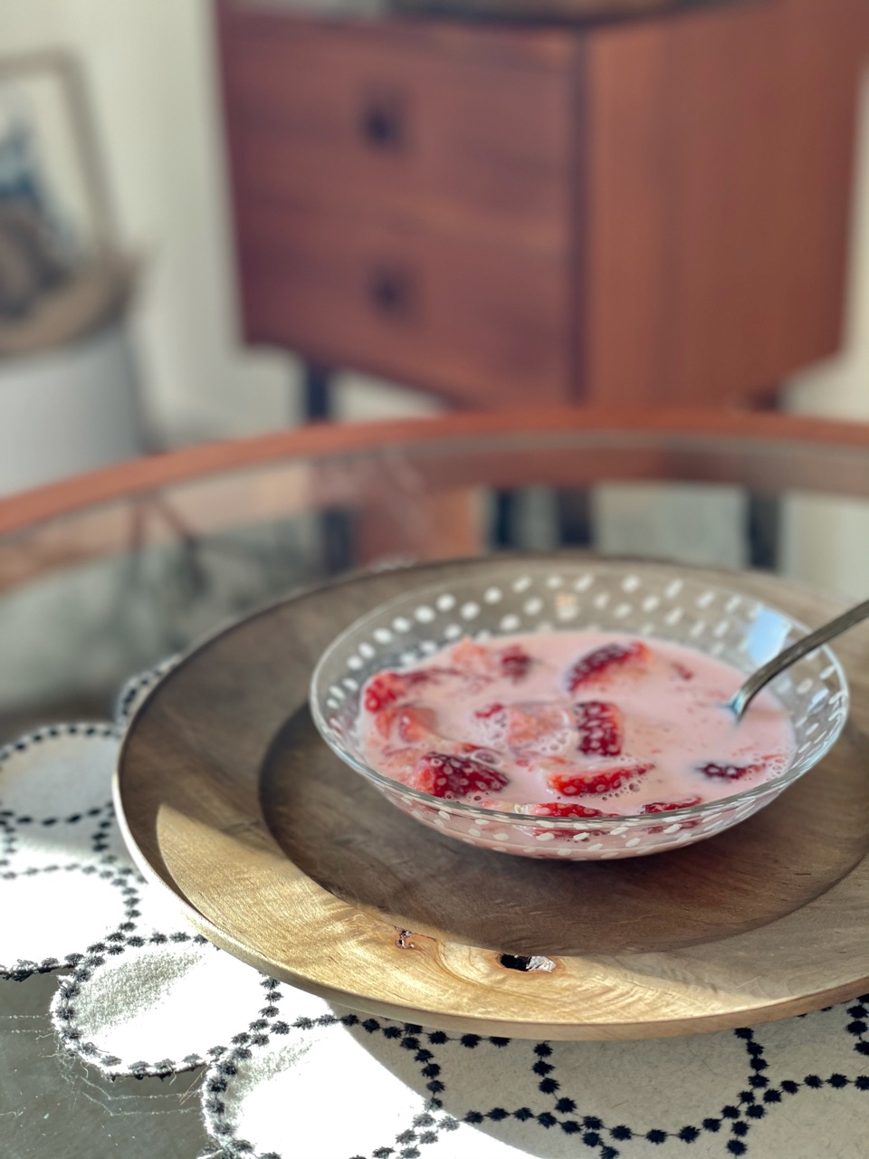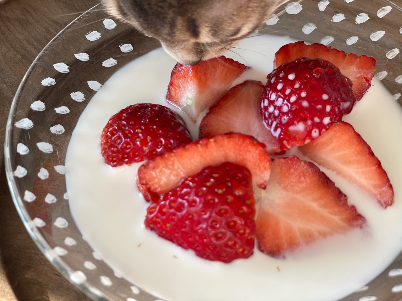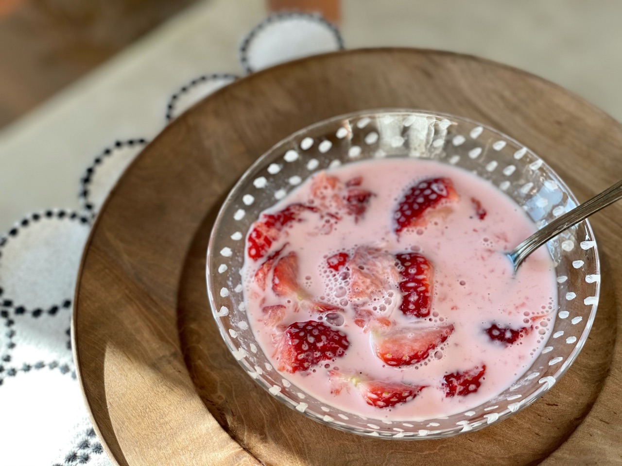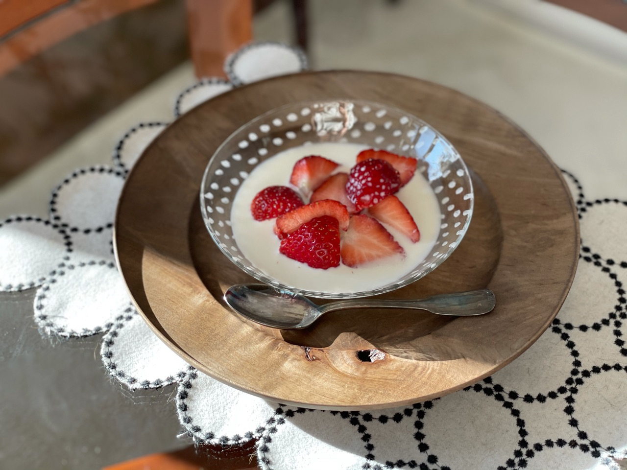 いちごに牛乳と練乳をかけて、いちごを潰してたべる「いちごミルク」が、子どものころには極上のおやつでした✨