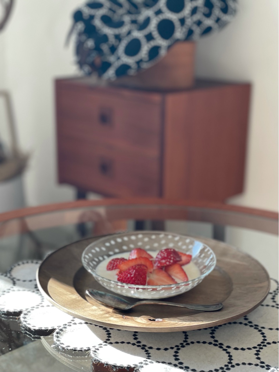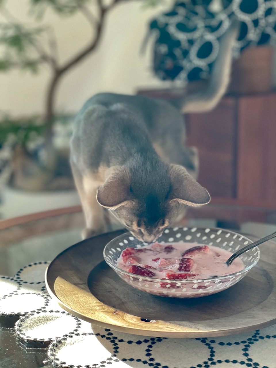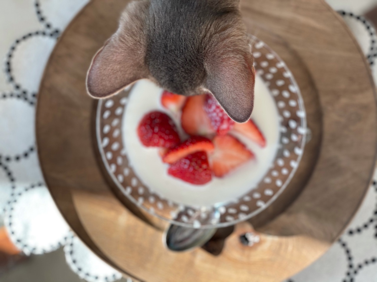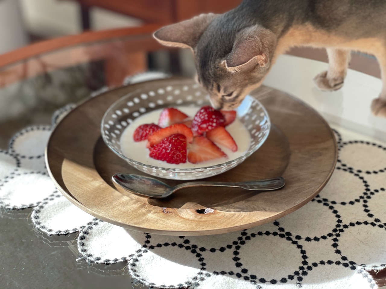 いちごスプーンがないし、スプーンの背が強く器に当たると割れちゃいそうだから慎重に。