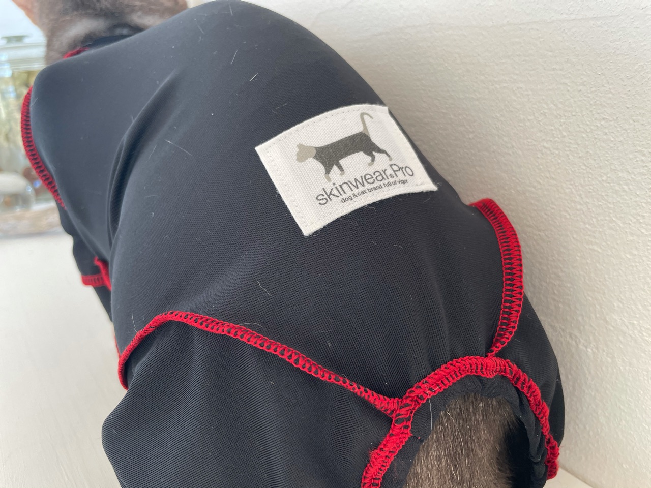【アトピー、アレルギー、過剰グルーミング、舐め対策】皮膚保護服スキンウエア(R) プロ(旧名エリザベスウエア 男の子雄/女の子雌兼用・猫用)【ネコポス値2】【日本製 国産 純正品 猫服 キャットウェア 介護服 キャット服 エリザベスカラー ガード スーツ つなぎ】