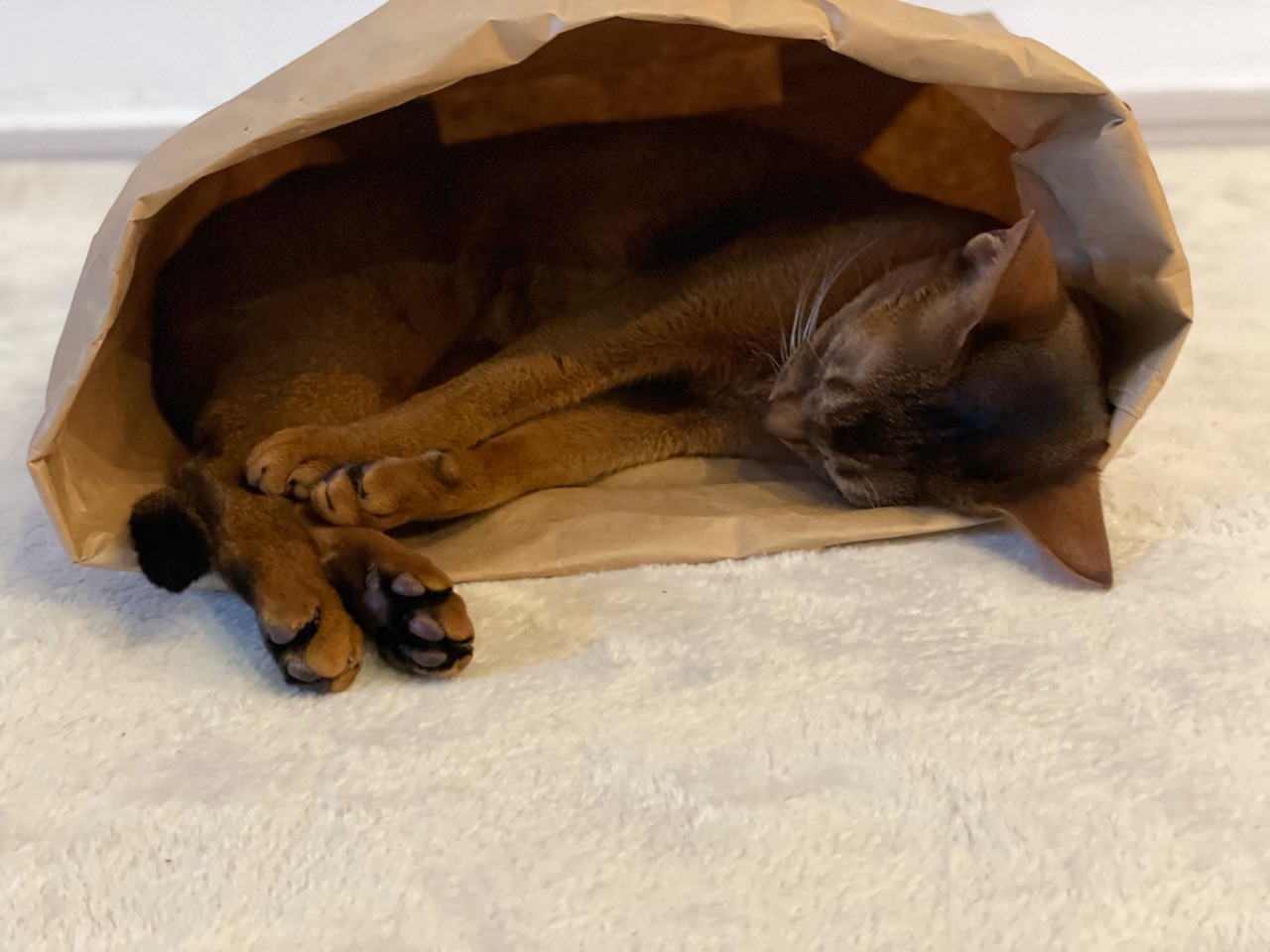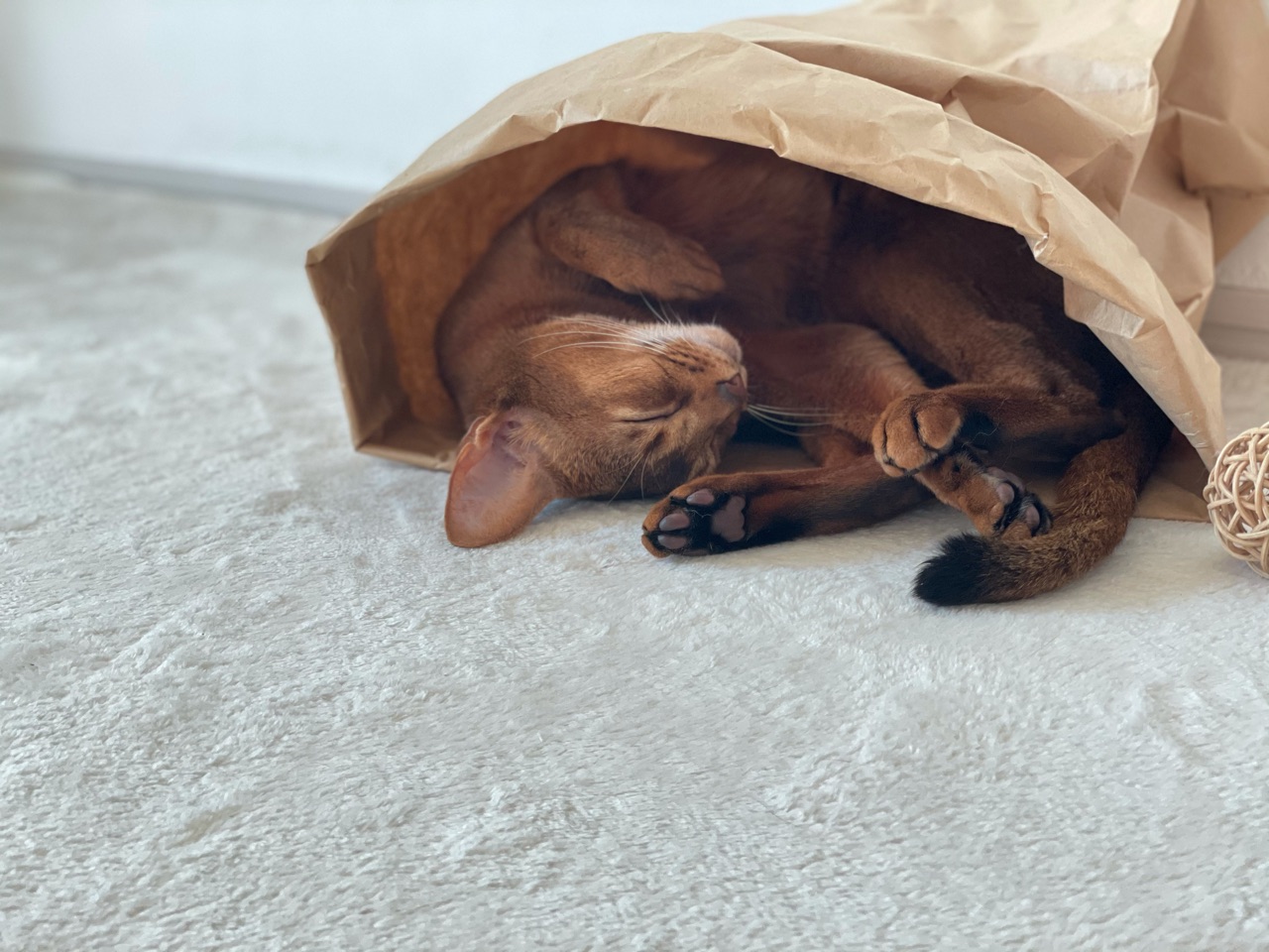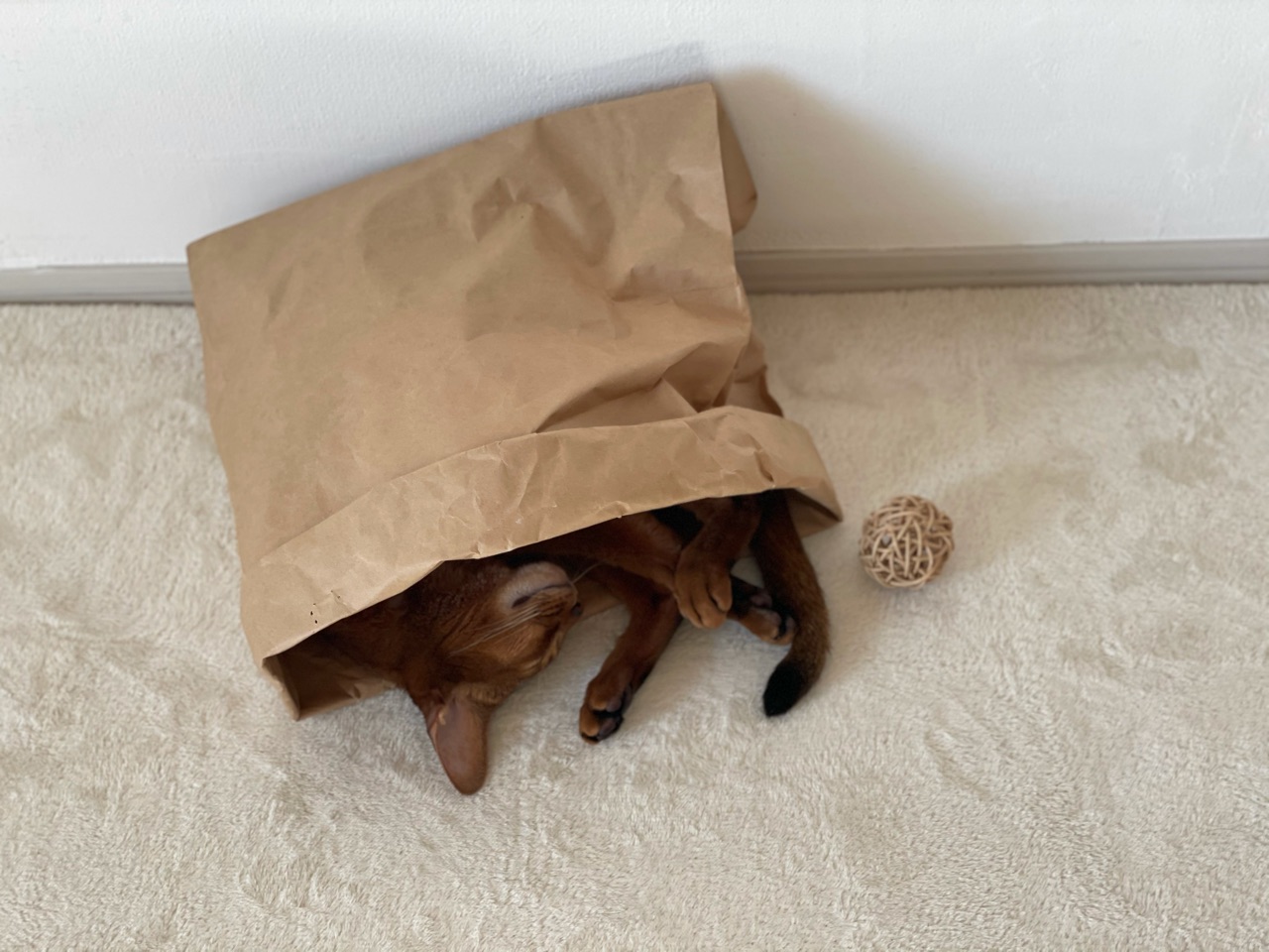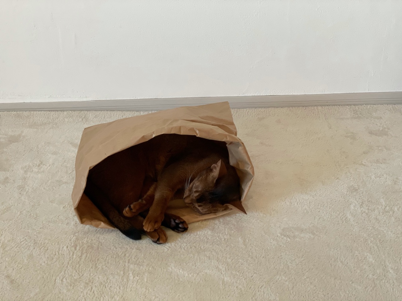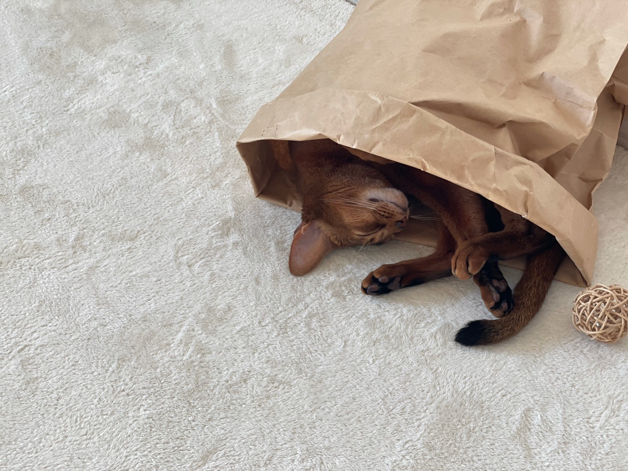 紙袋をベッドにしちゃうとか、反則級にキャワじゃないかぁ(*´ω`*)