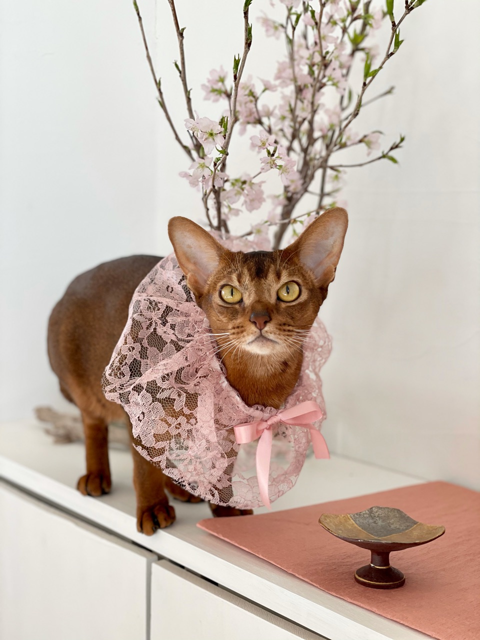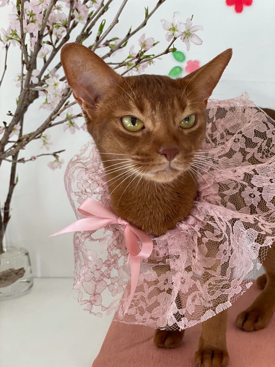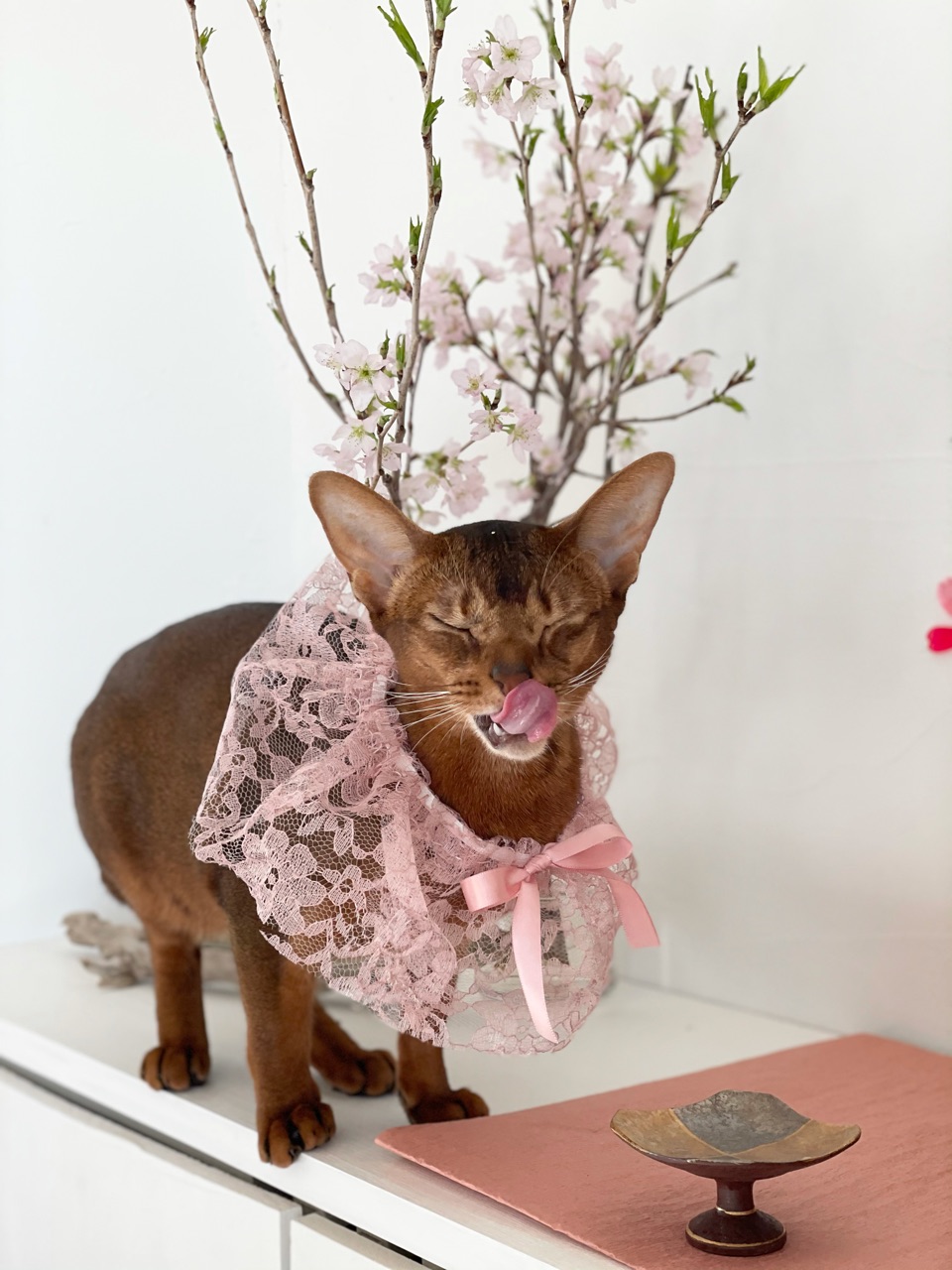 グレイッシュな毛色に淡いピンクが相性抜群でとっても素敵💕