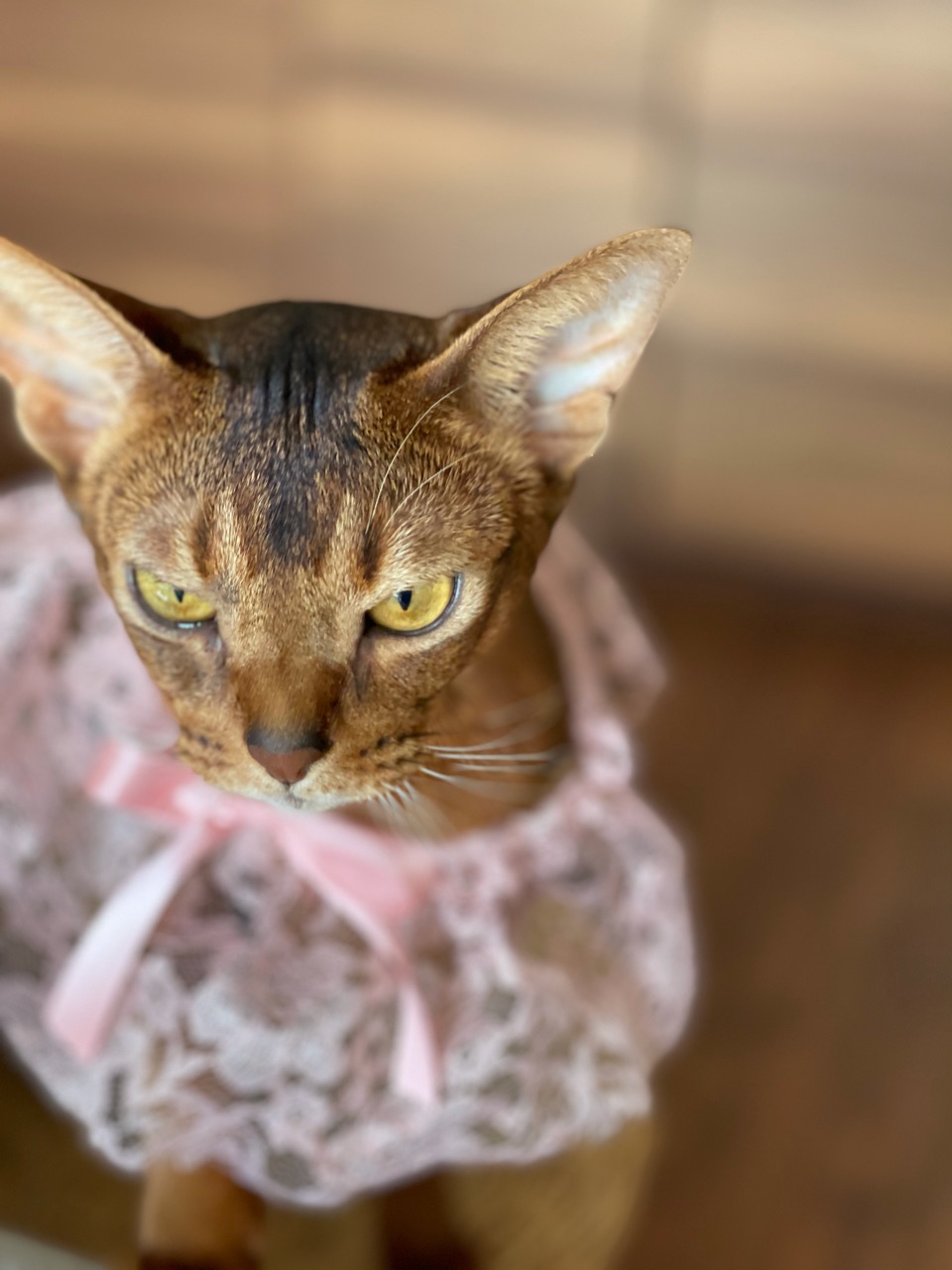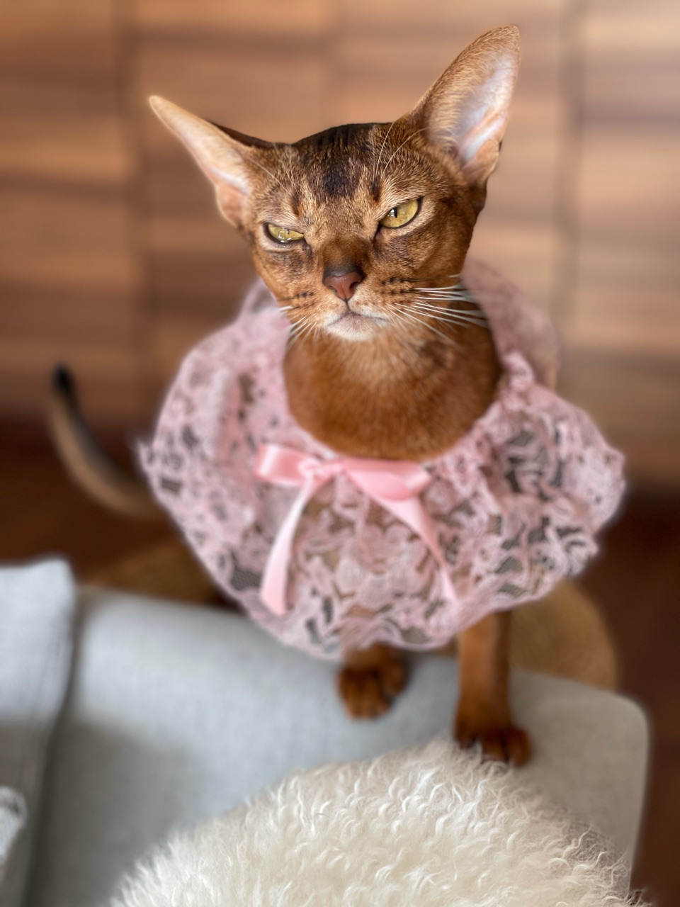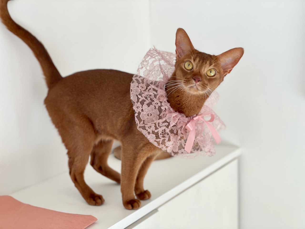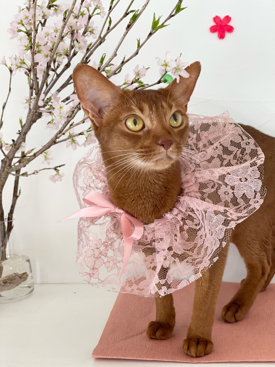 グレイッシュな毛色に淡いピンクが相性抜群でとっても素敵💕