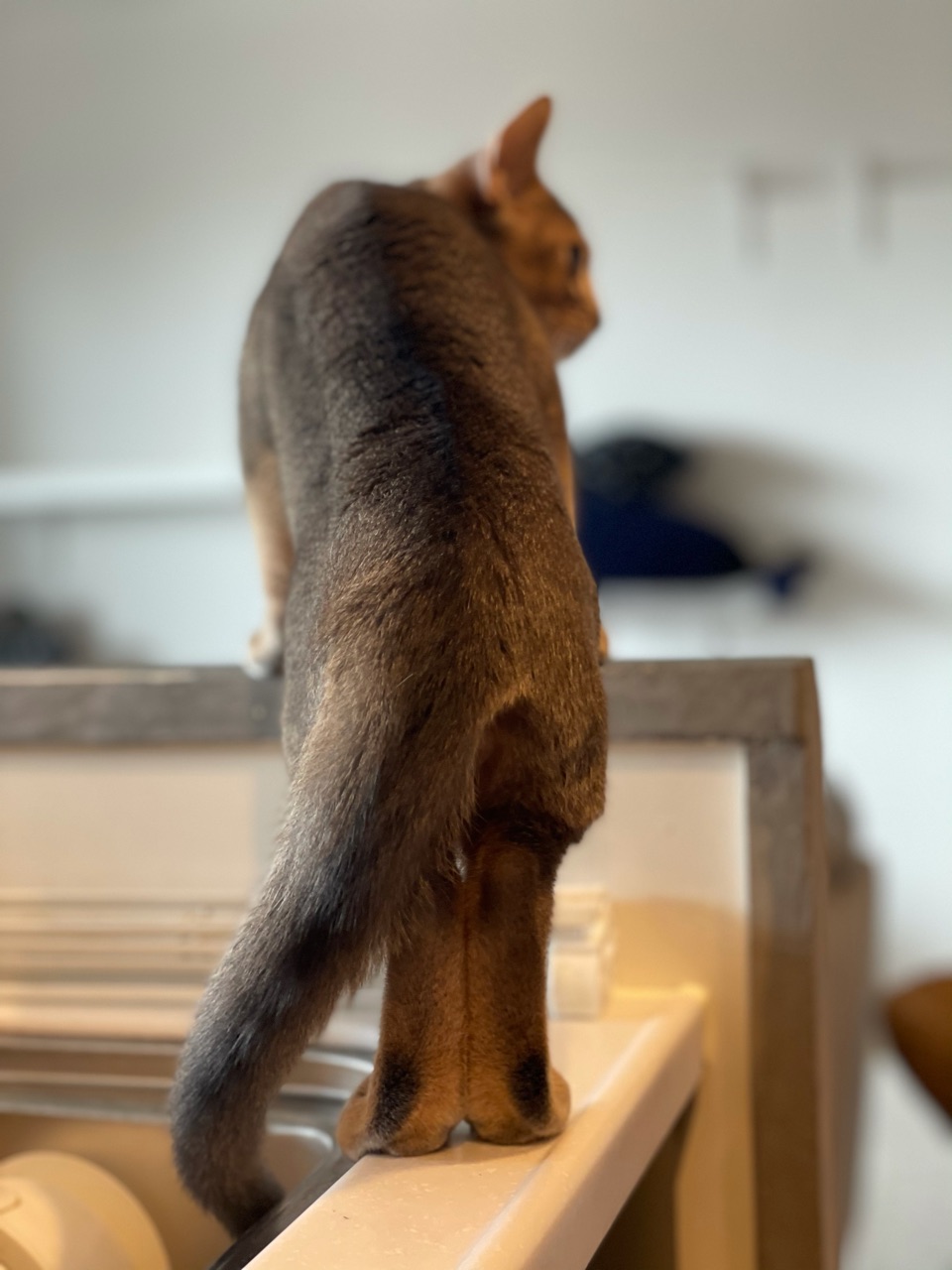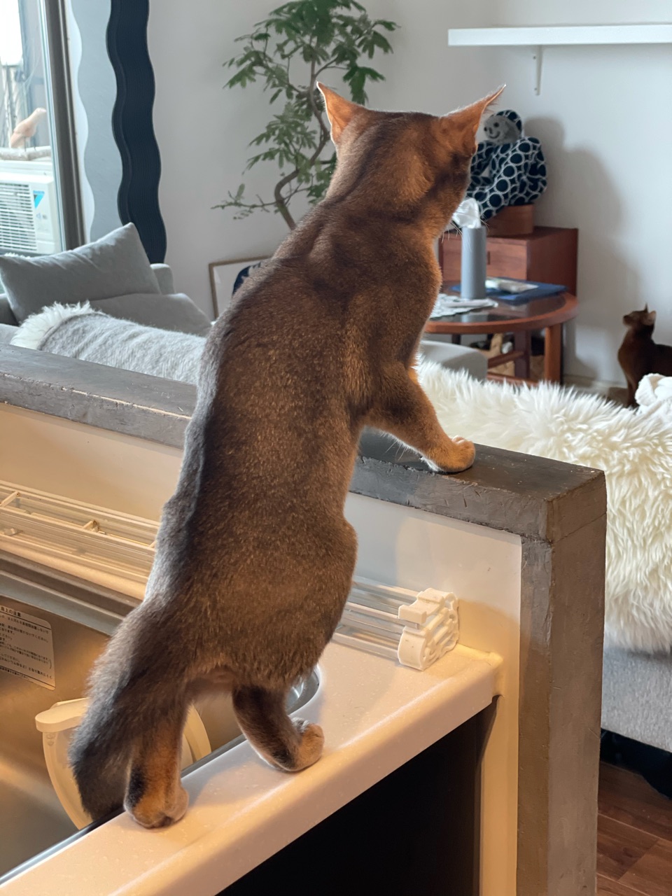 あまりにビビってるので、抱き上げて撫で撫でしたんですけど、お尻尾と背中のお毛毛がなかなか戻らなかったです。