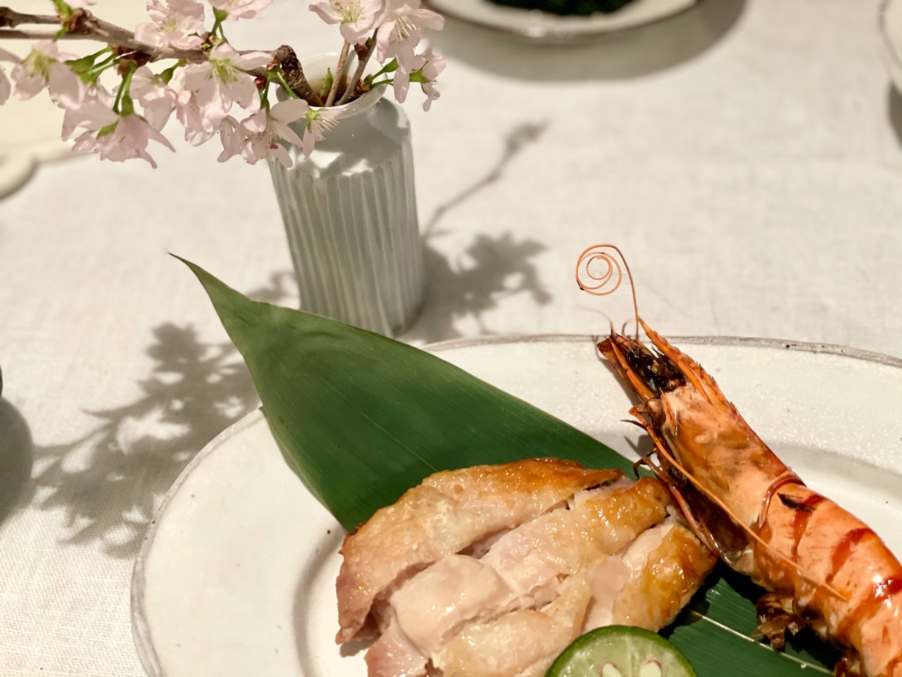 あとは、オーブンで焼いた鳥もも肉と海老。