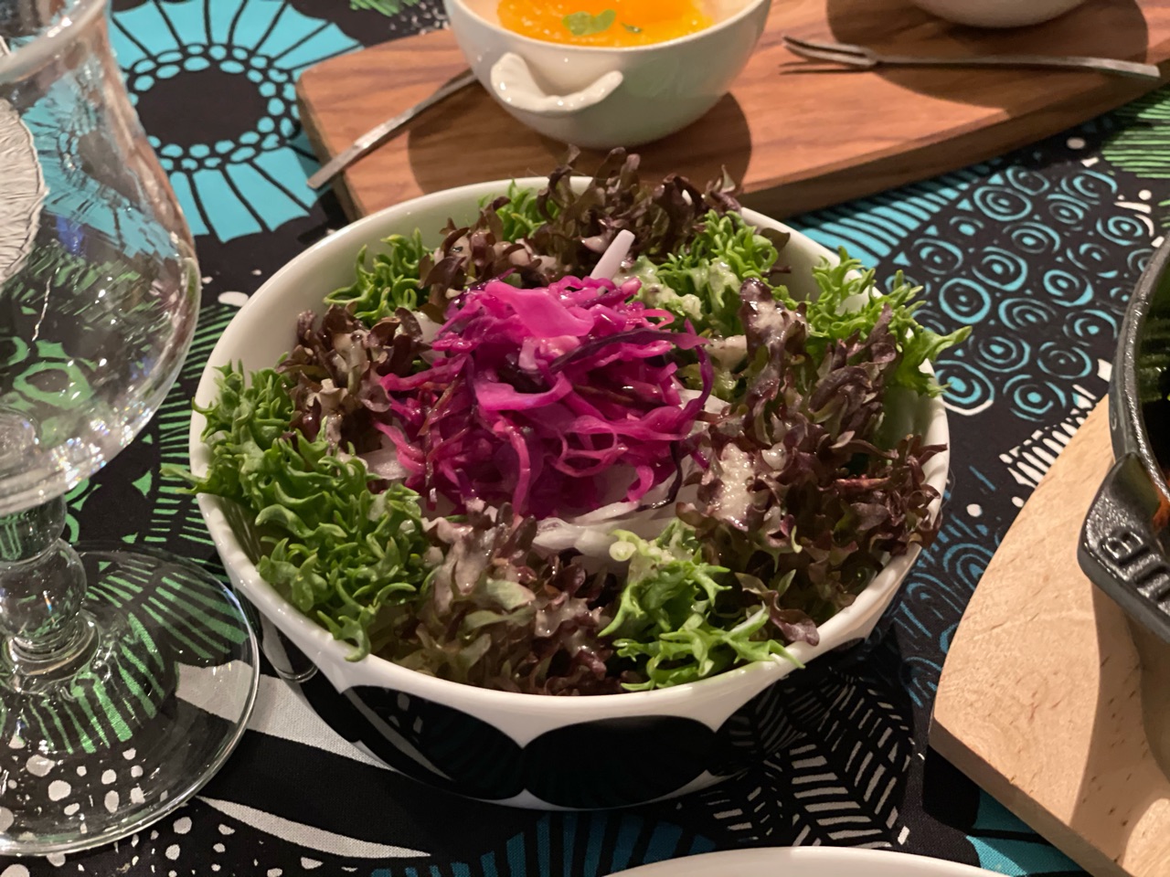 サラダは、鎌倉のレンバイで買ったハンサムレタスや紫キャベツのピクルス漬け。