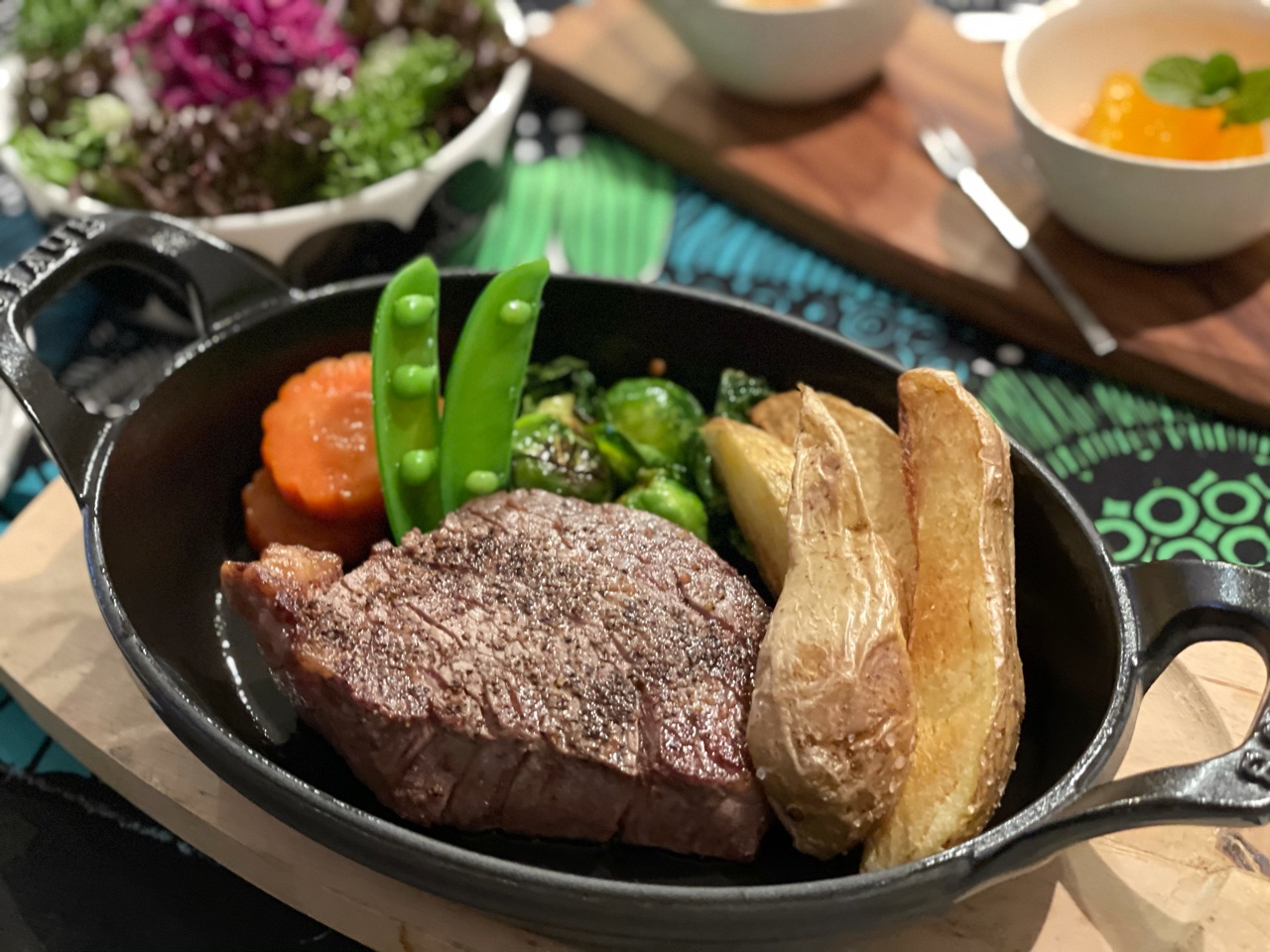 このスタッカブルディッシュはオーブン料理などに使う予定なんですが、早く使いたくてステーキのお皿として使ってみました。