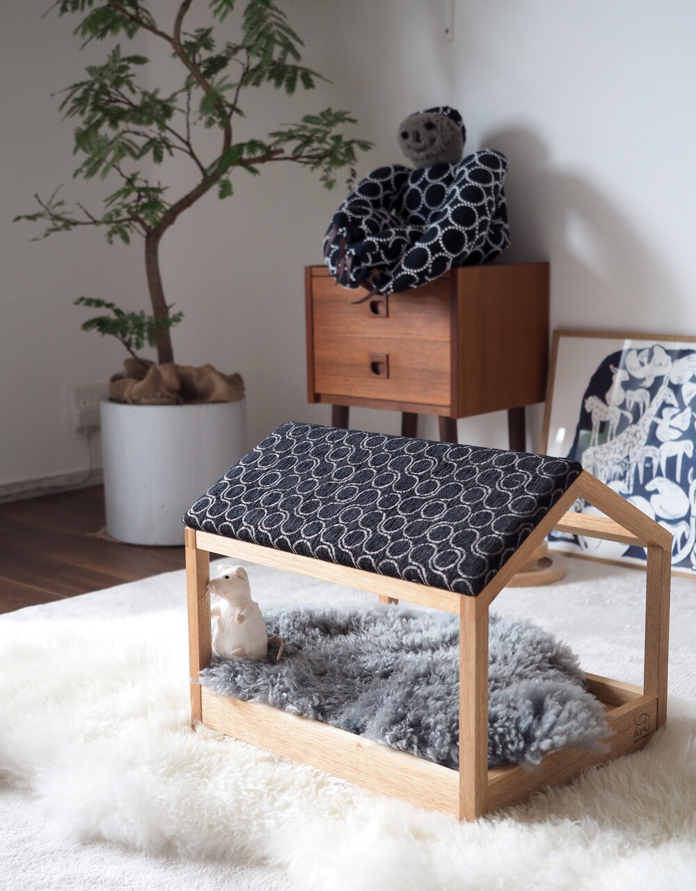 可愛らしい寝姿を、もっと可愛らしくしたくて、ベッドを作りたいと思ったのが、ジゼルトモモ の始まりでした。しっかりした木製品でと思ったのも、愛する我が子には、人間と同じ木製のベッドにしたかったから。