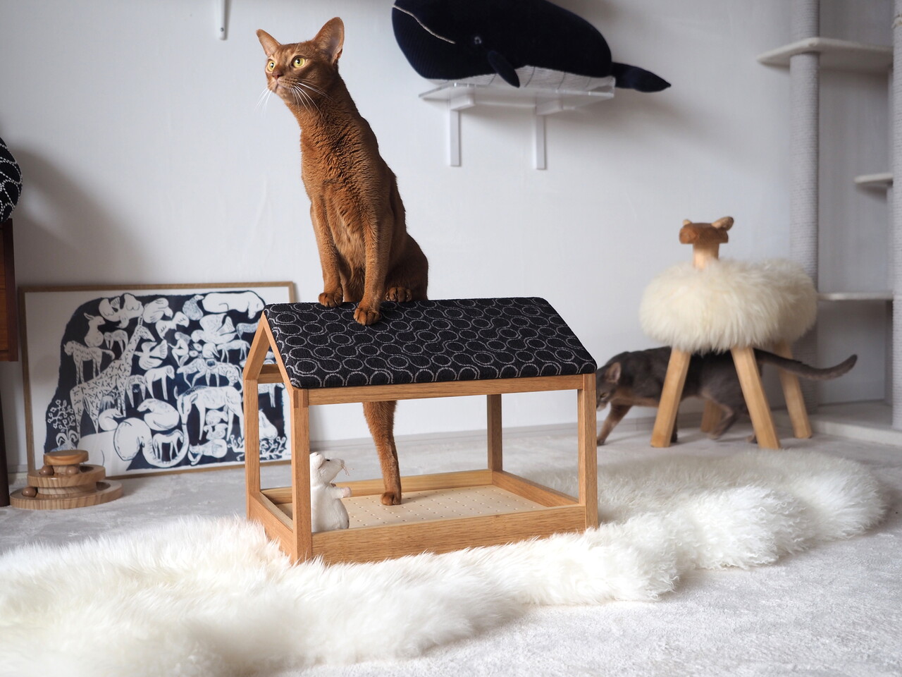 床に置いて使ってもオシャレですし、もちろん屋根に取り付けたら乗っかって爪とぎもできますね♪
