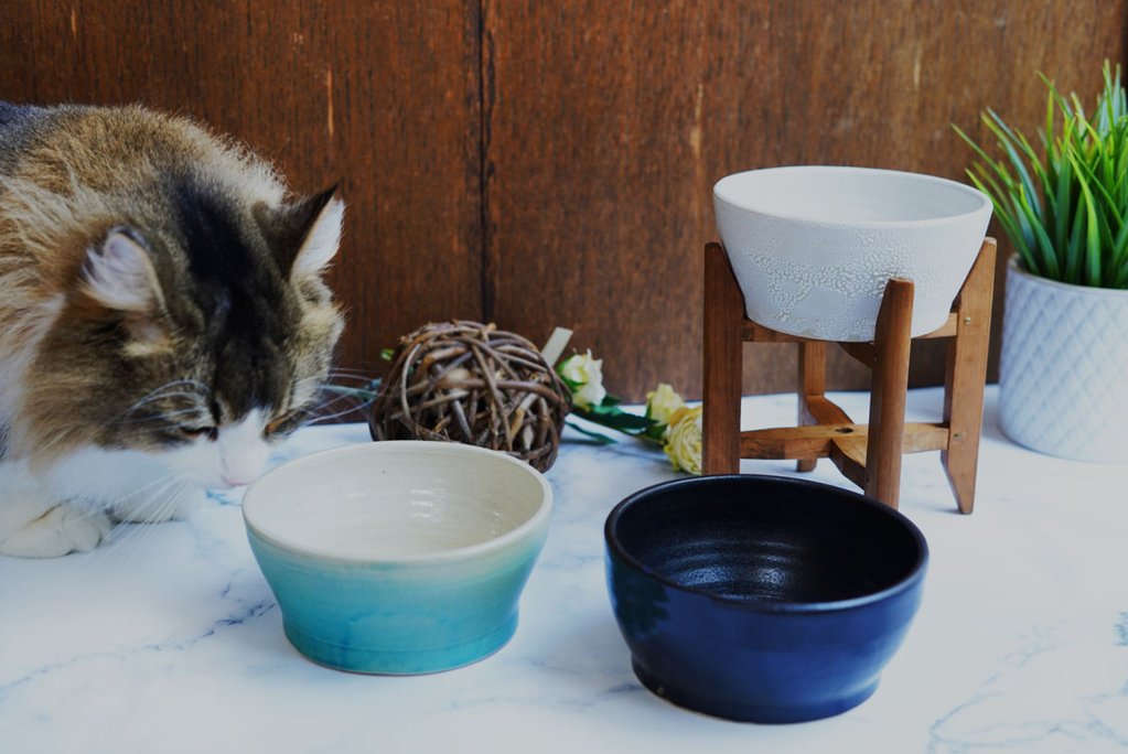 台として使うのは、京都で100年以上続いた絹織物工場が廃業した際に、織り機と共に廃棄となった糸巻き。昔の機械の為に作られたものなので、全て天然木製、とても丈夫にできています。長い間働き、役目を終えた埃を、丁寧に拭き取り、磨き、蜜蝋で出来たワックスを塗り込みました。 大昔に手作りで作られた糸巻きなので、大きさを除いて、一つとして同じ姿のものはありません。長く使われた天然木の味わいと傷をヴィンテージとして楽しんでいただけます。 この糸巻きに、作家さんの器を組み合わせる事で、猫さんの水飲み器として、新しい命を吹き込みました。