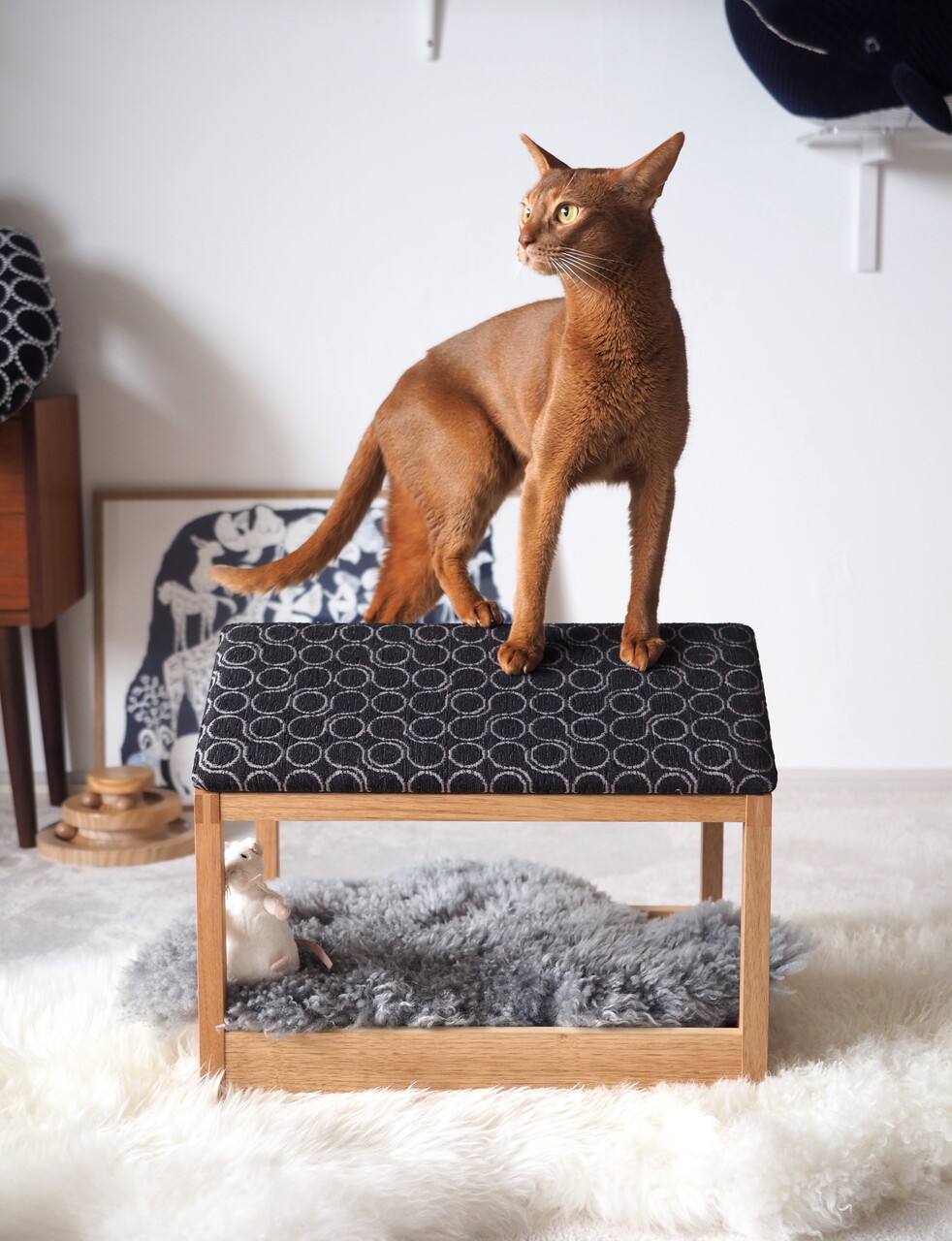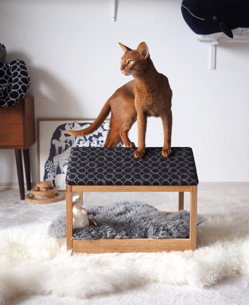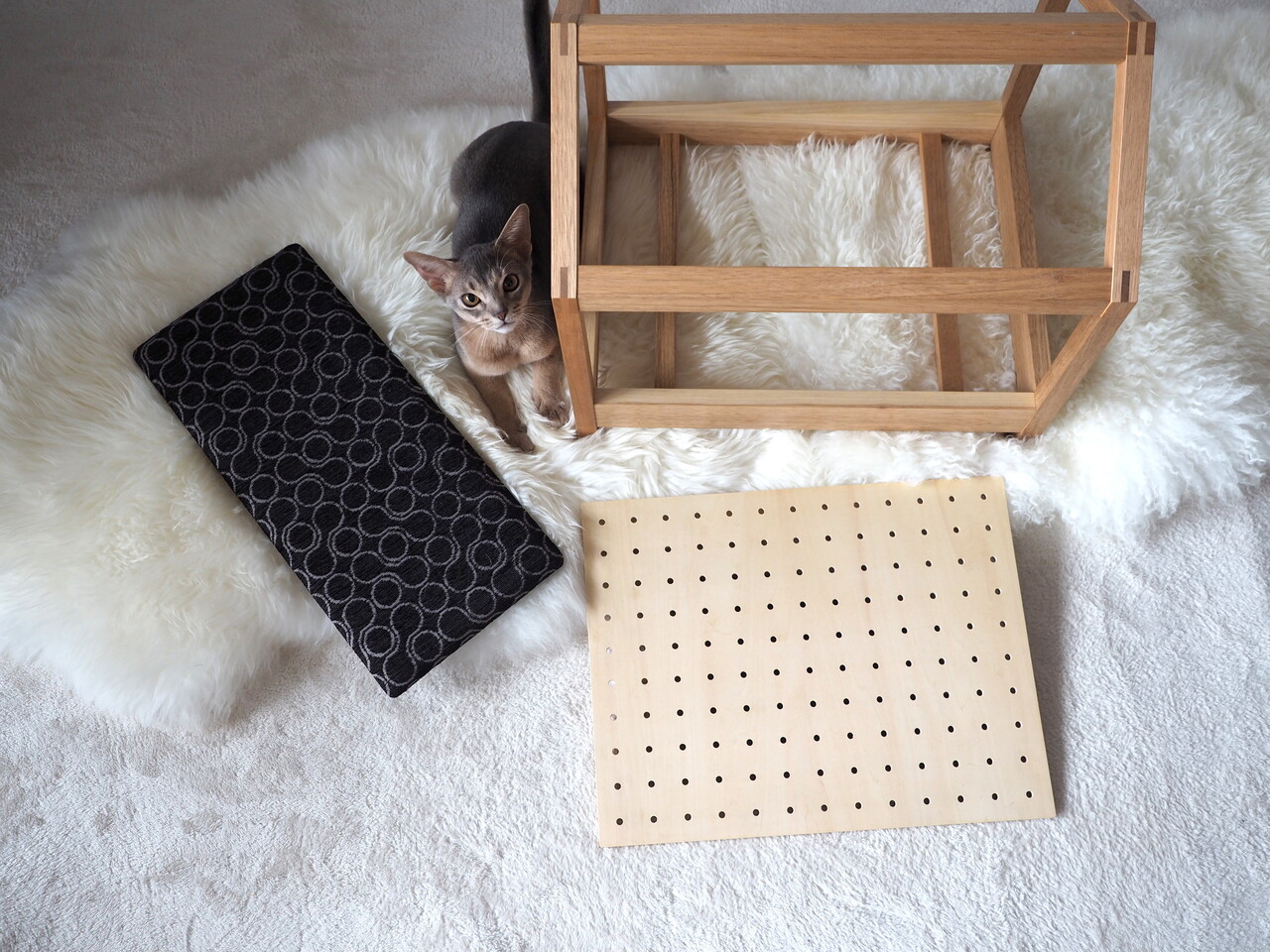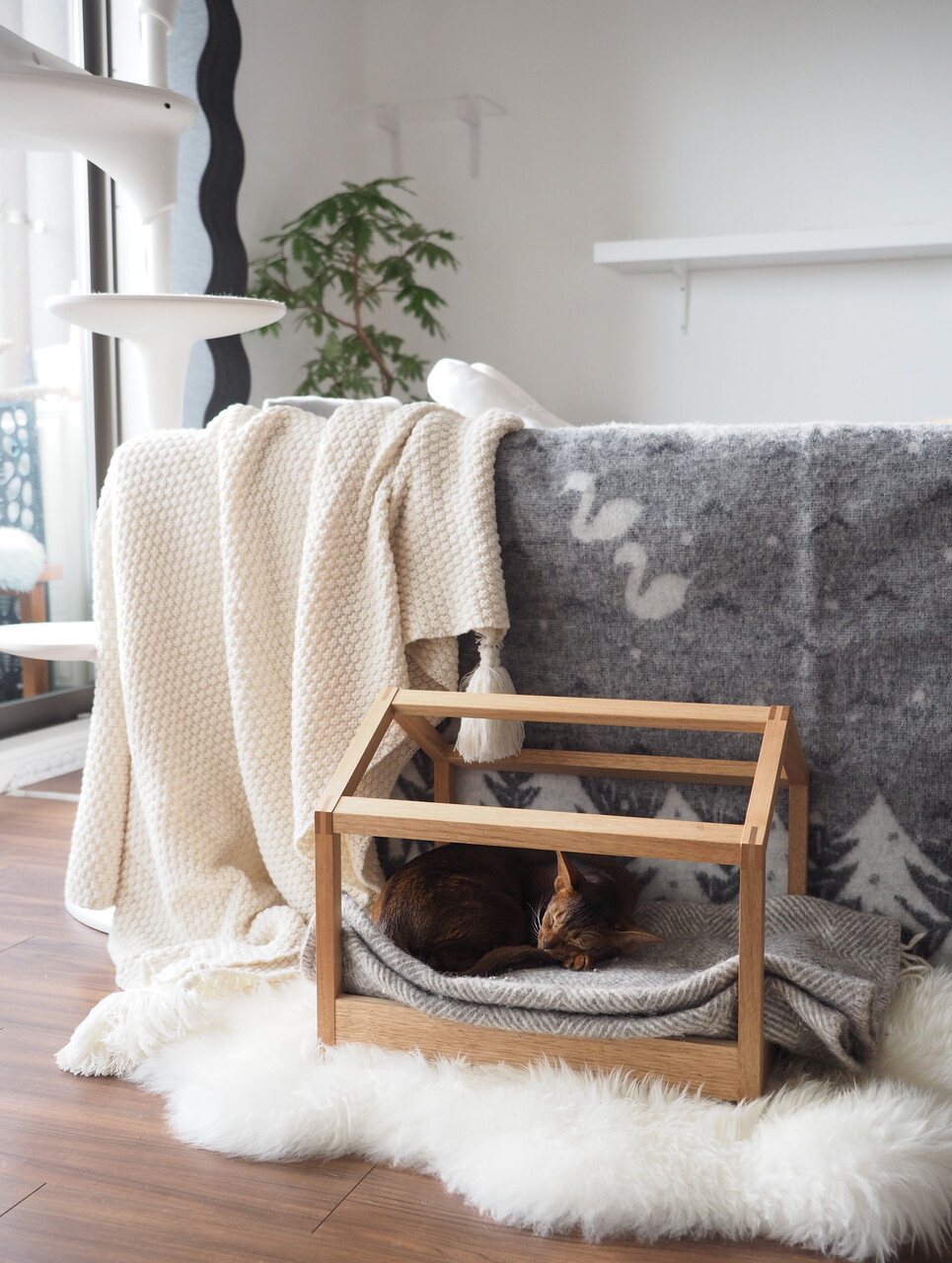 爪とぎ屋根(別売りオプション)を取り付けたり、布で覆ったり、可愛い敷物を敷いたり…
