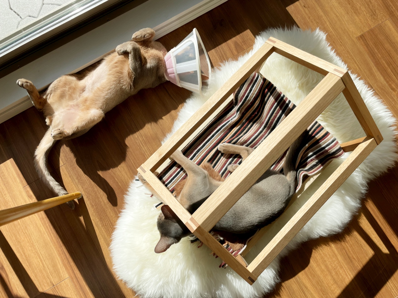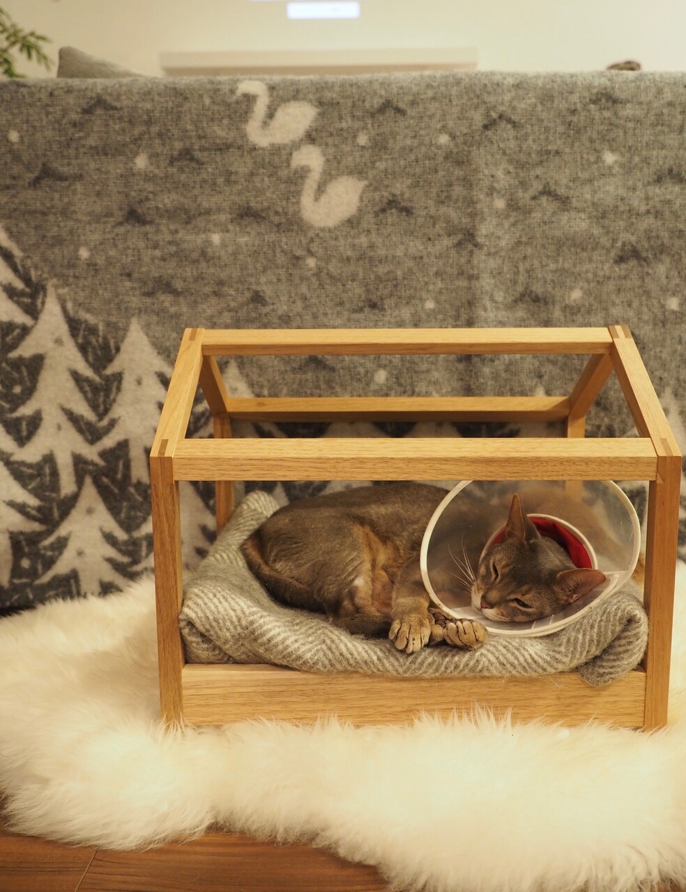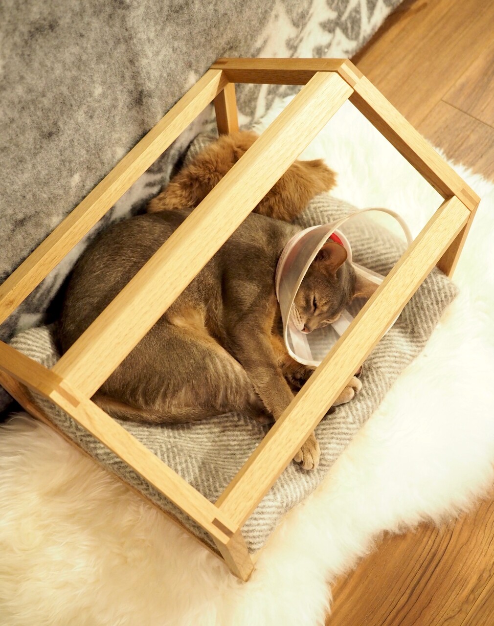 壁がないから、エリザベスカラーをつけたままでも心地よさそうです。