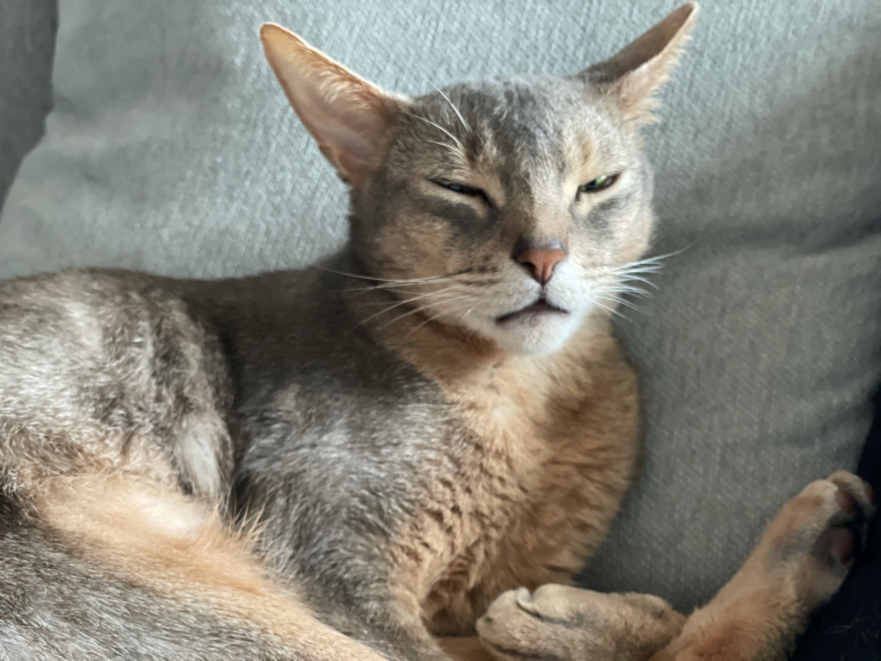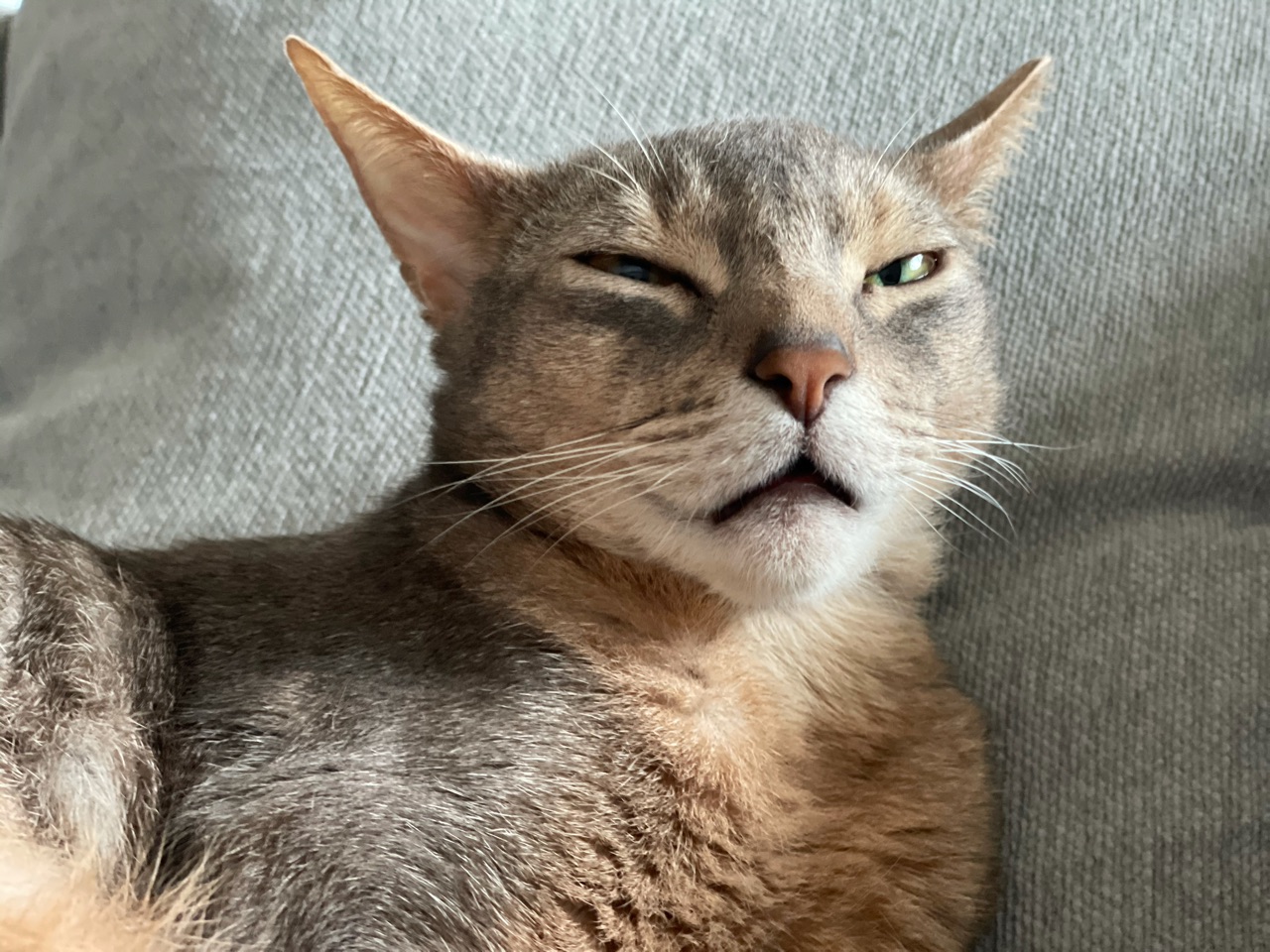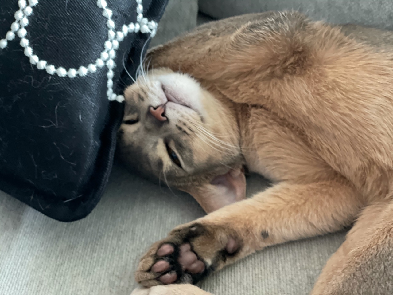 もう少ししたら、もぞもぞと体勢を変えて寝ると思います。