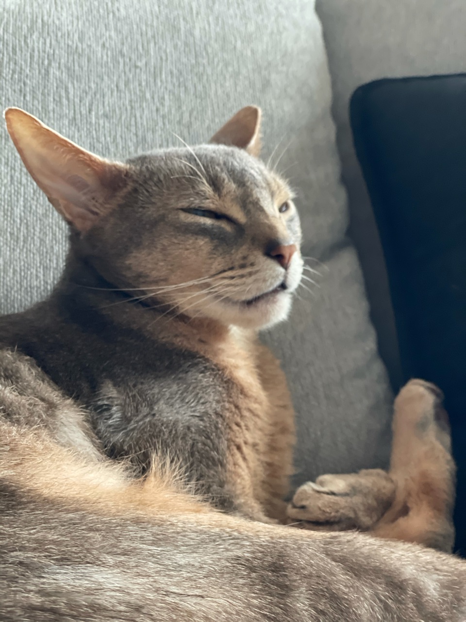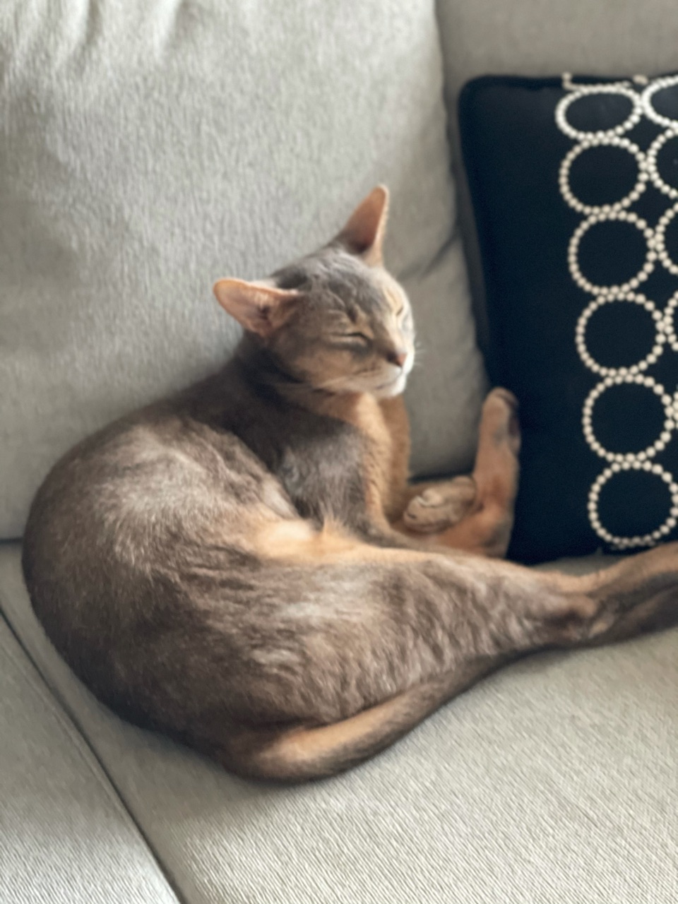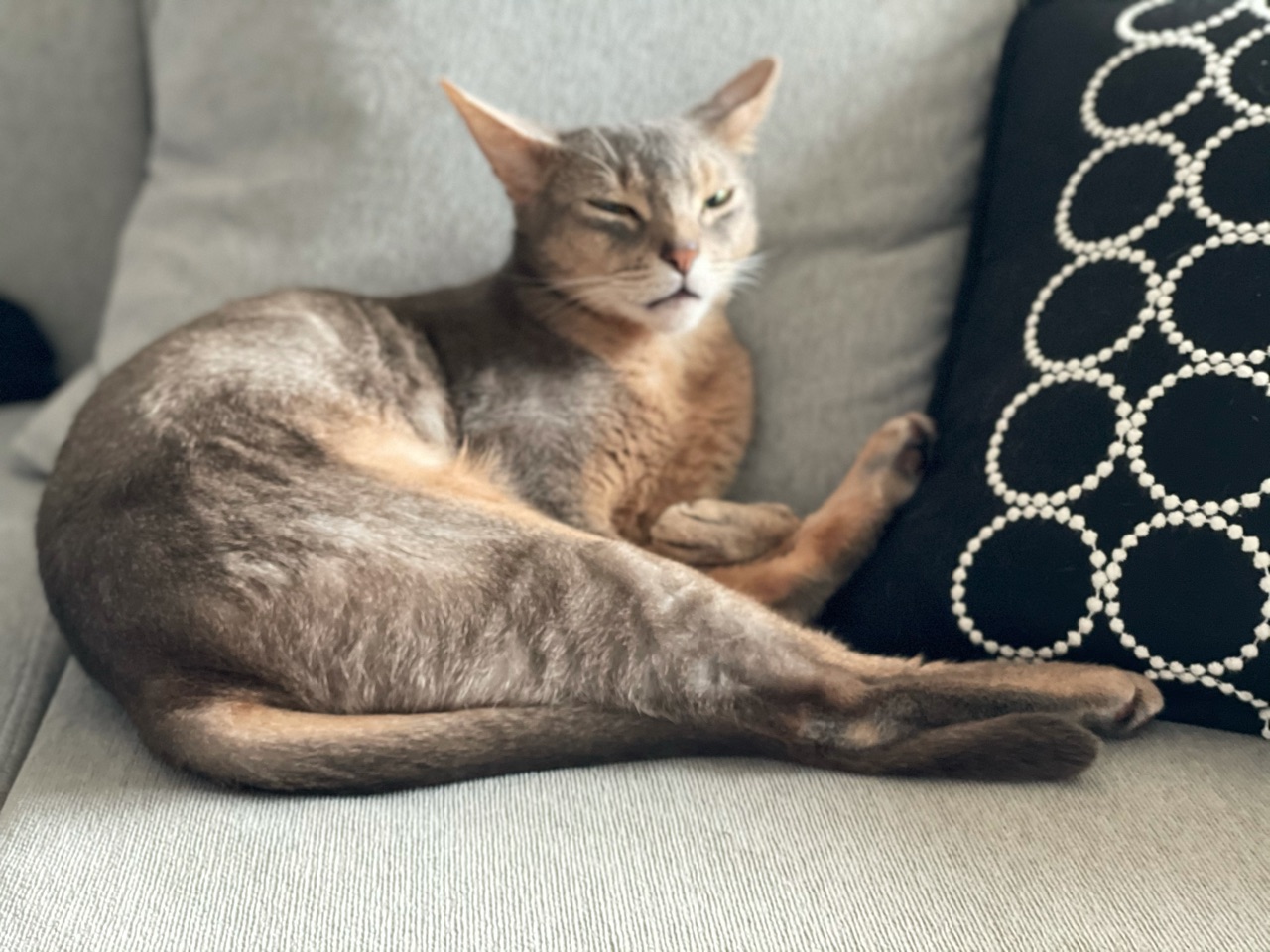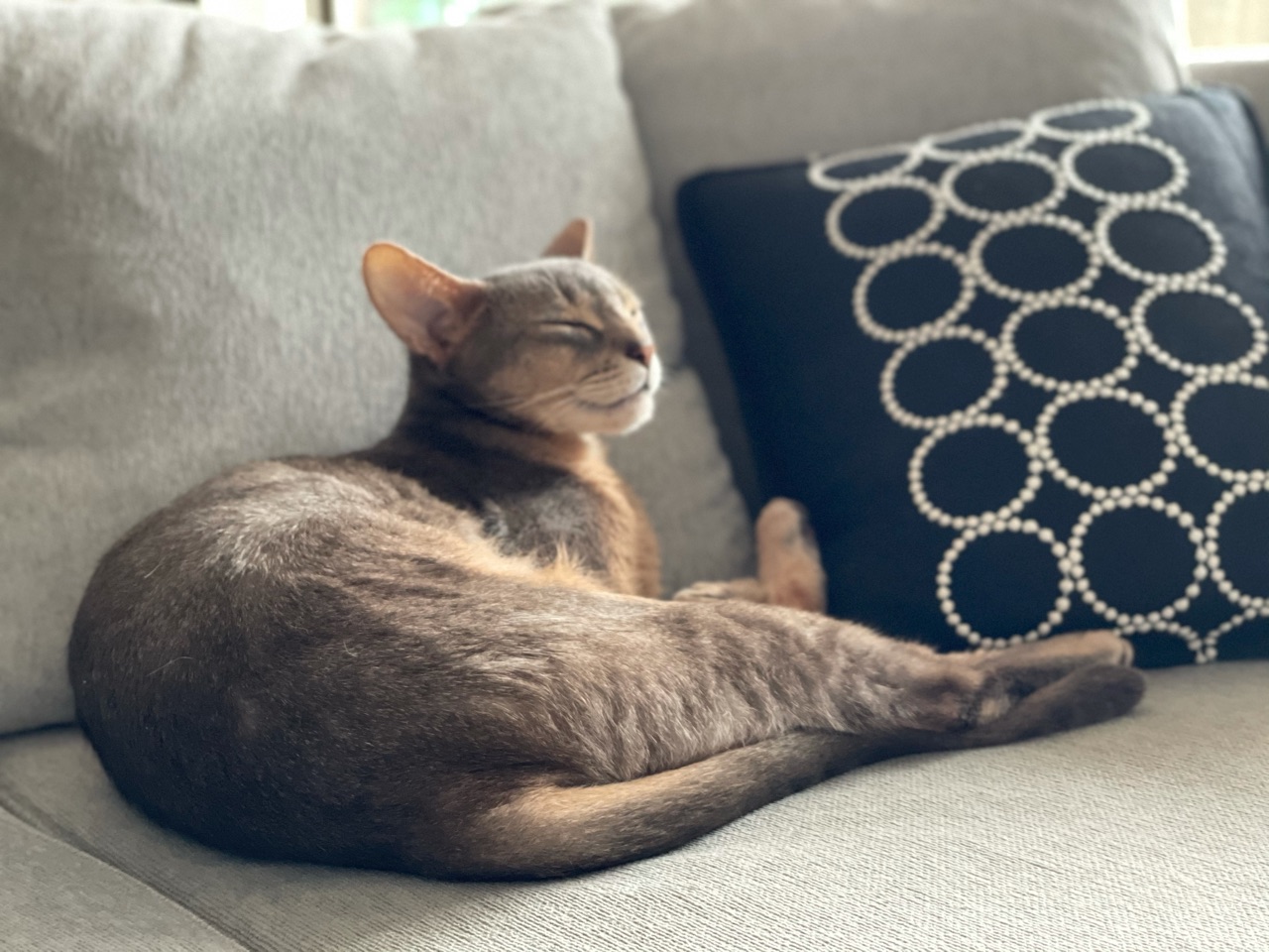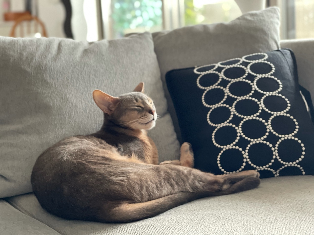 ソファーのお気に入りの場所で、ほげーっと佇むぼくちん。