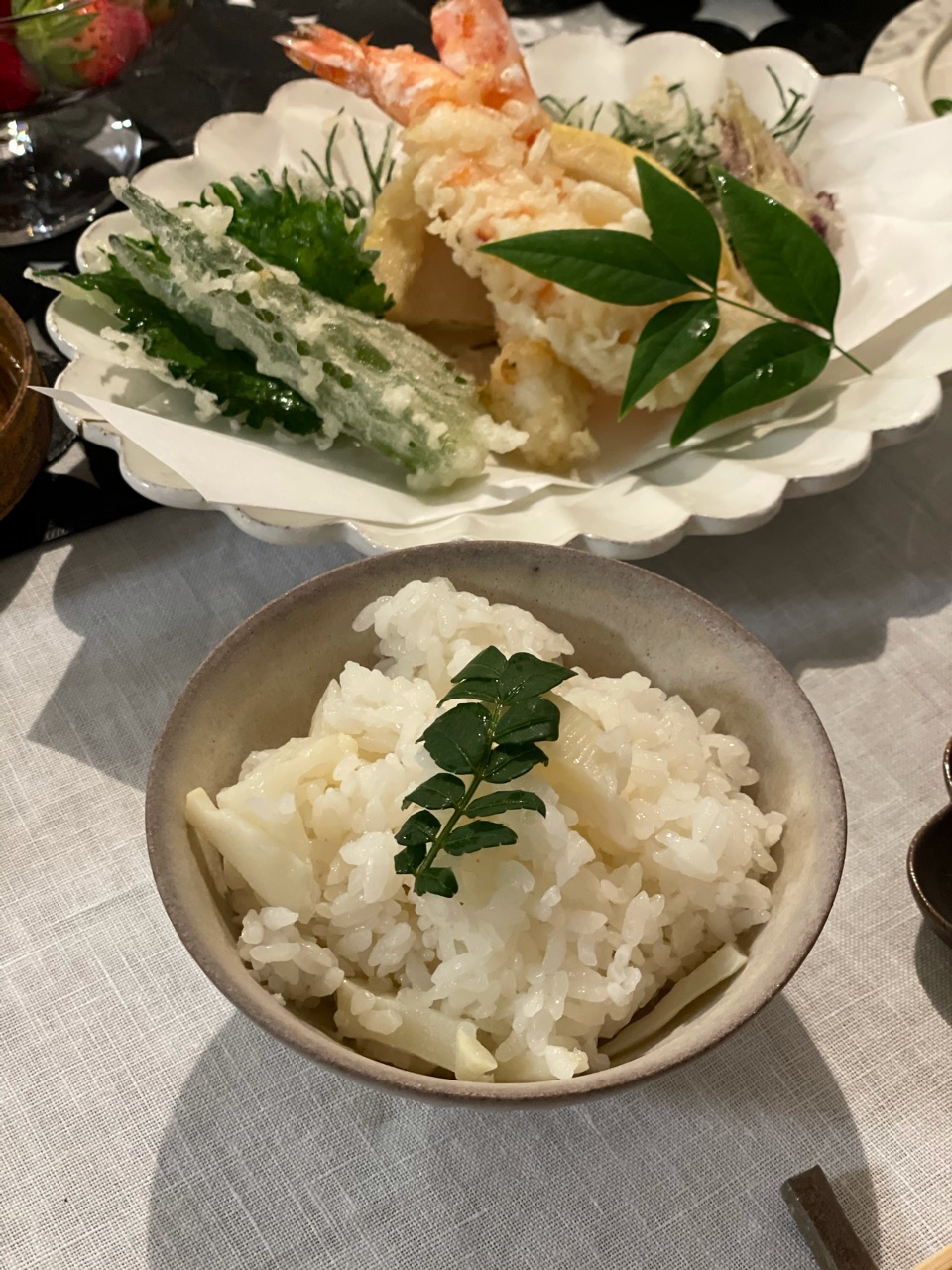 たけのこの天ぷら、サクサクで、たけのこの風味がふわっとして、とってもおいしかった✨