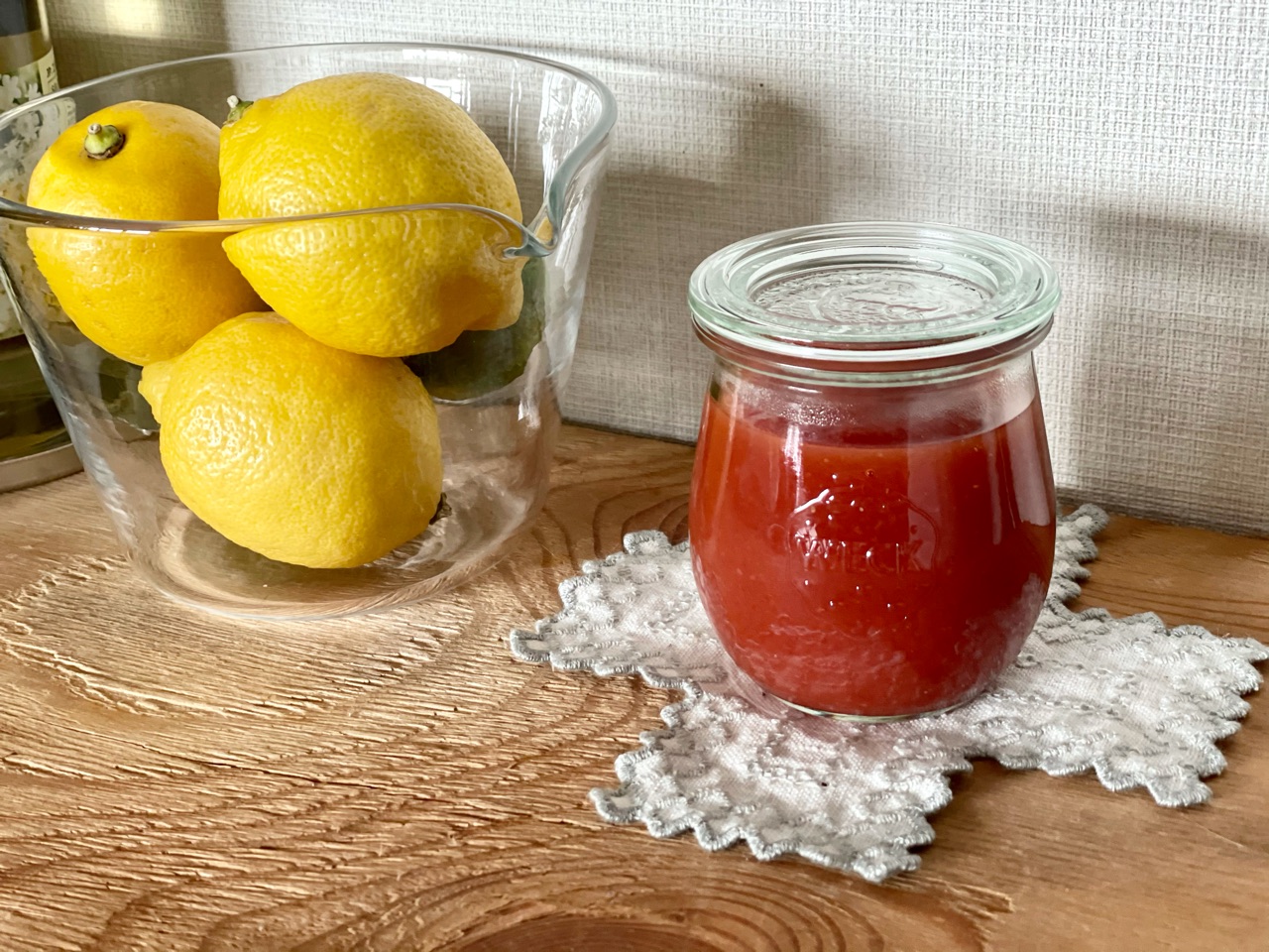 手作りケチャップ初めて作りましたが、煮詰める作業があるくらいでそんなに難しくなかったです。