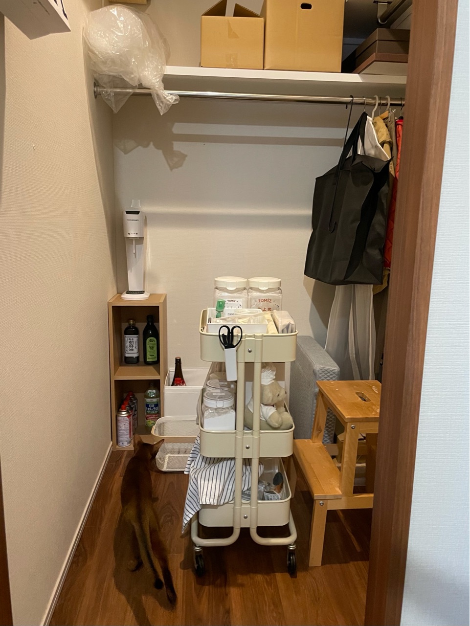 いつかパントリーとして使いたいので、パントリーに入れてもおかしくないものを収納しようと思ってるんですけど、なんか余分な物が増えてしまう…
