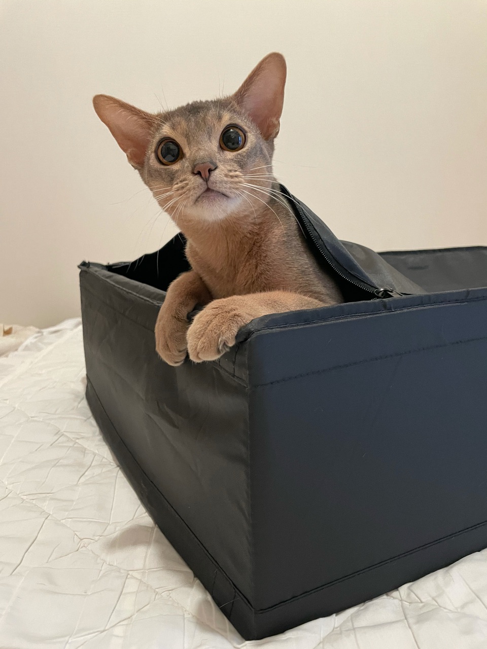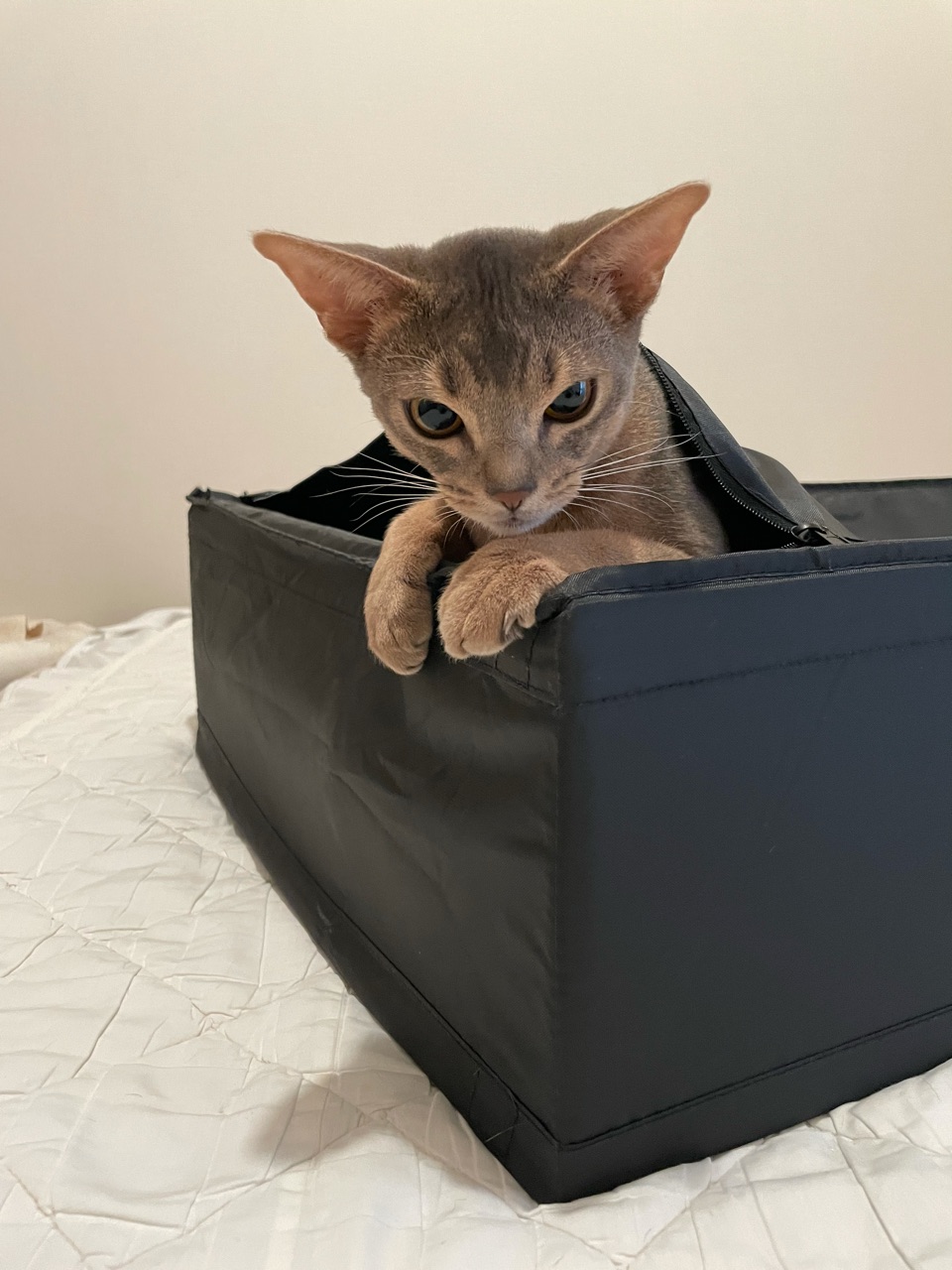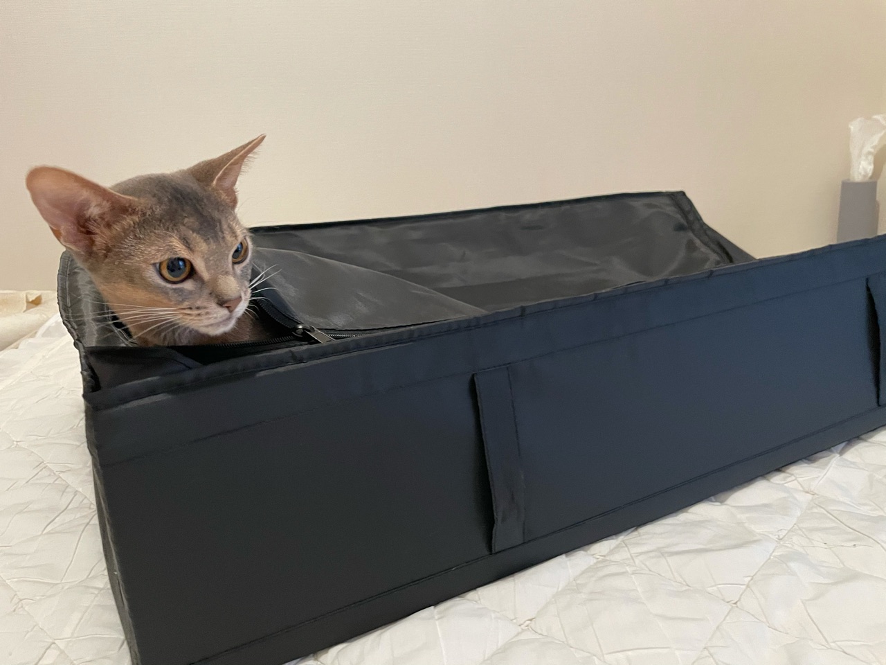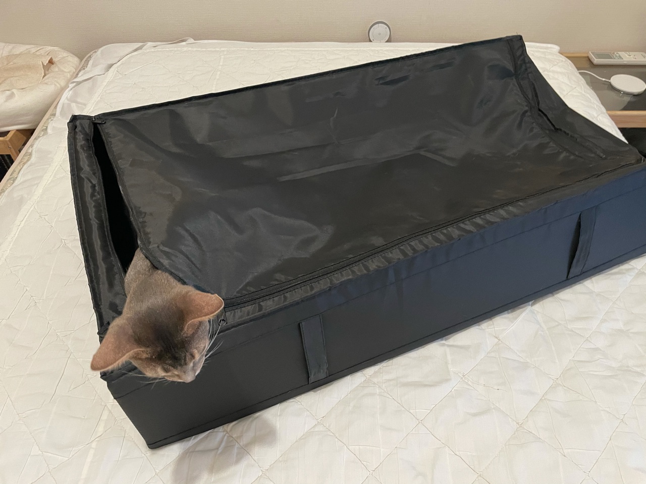 小さめサイズの布団に買い替えて、IKEAのスクッブの中に入れてしまいたいところです。