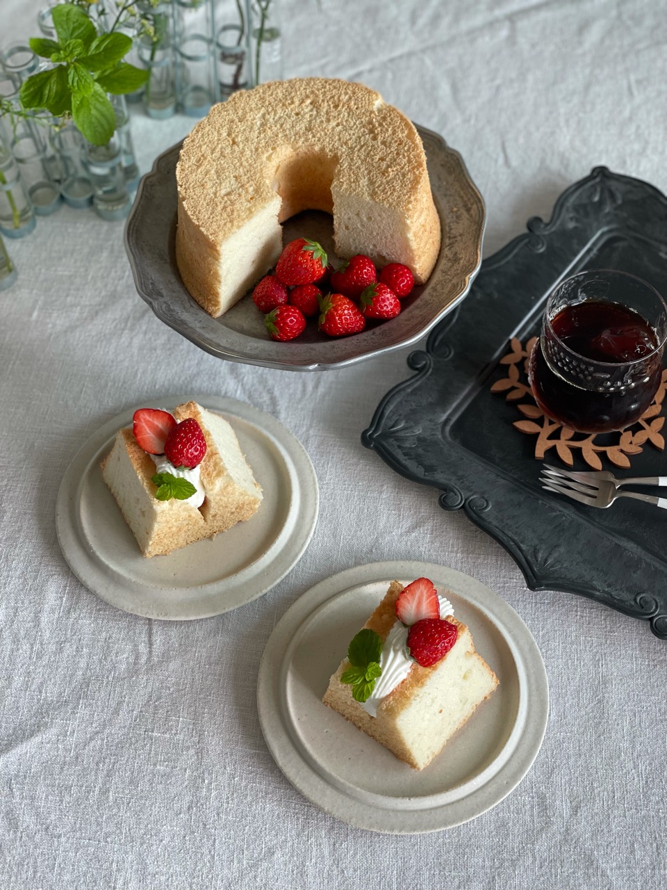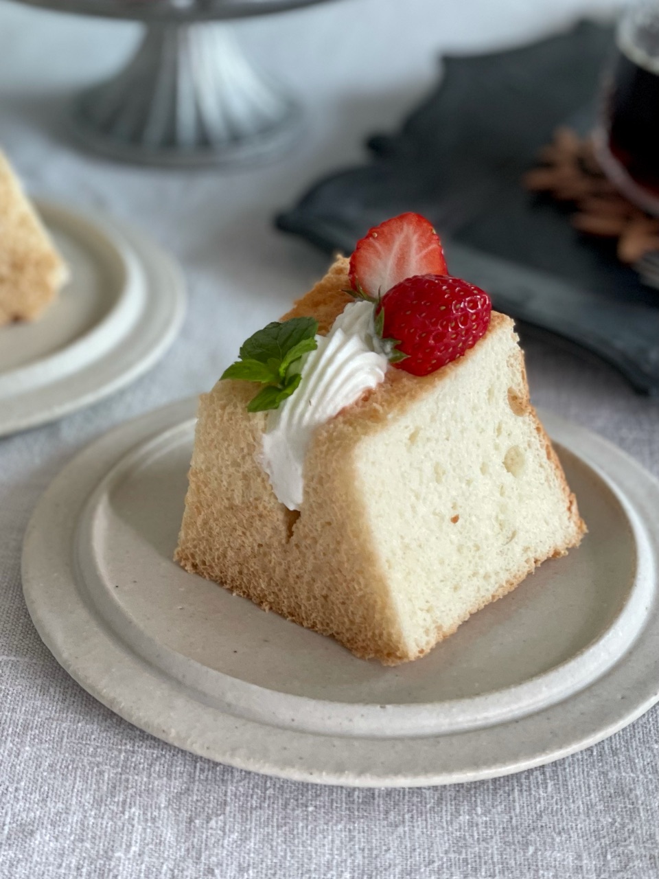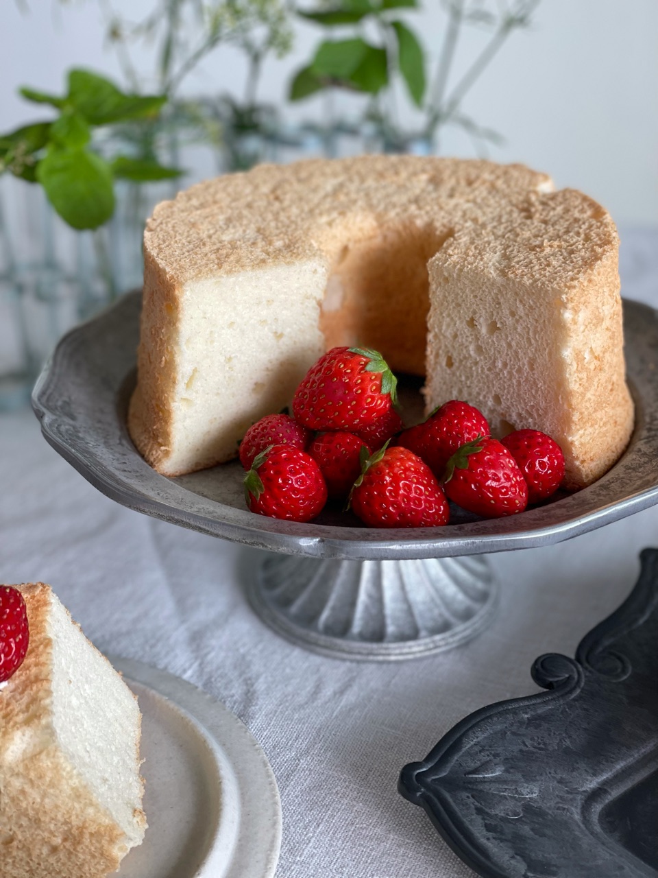 昔アメリカで近所のおばあちゃんに習ったエンゼルケーキは全卵を使ってバターの代わりにサラダ油を使って焼きました。シフォンケーキより弾力があってブヨンブヨンしてました。それに近いのかな?