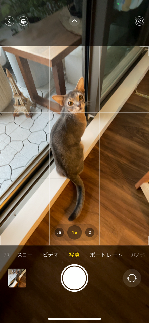 まずはそこからなんですが、iPhoneフォンのカメラの画面に縦横に線が入れられる機能があったんです!