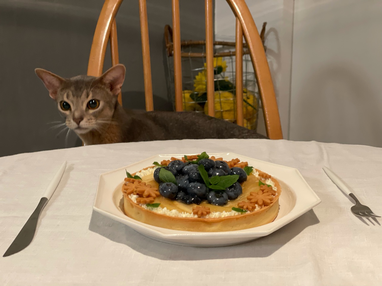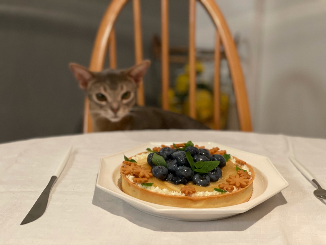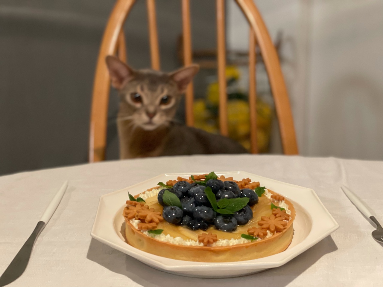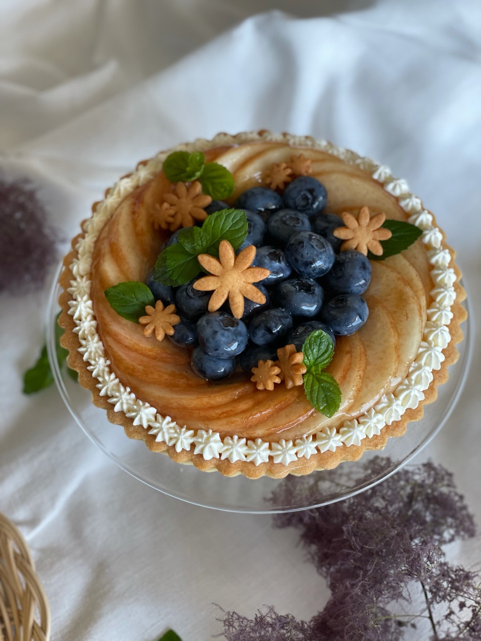 前回のタルトは、お花のクッキーをブルーベリーの上に散らしましたが、