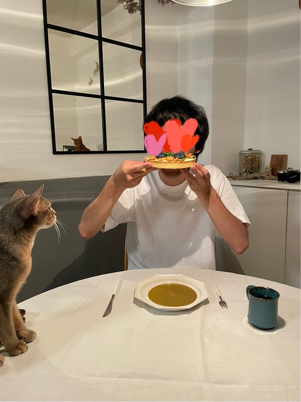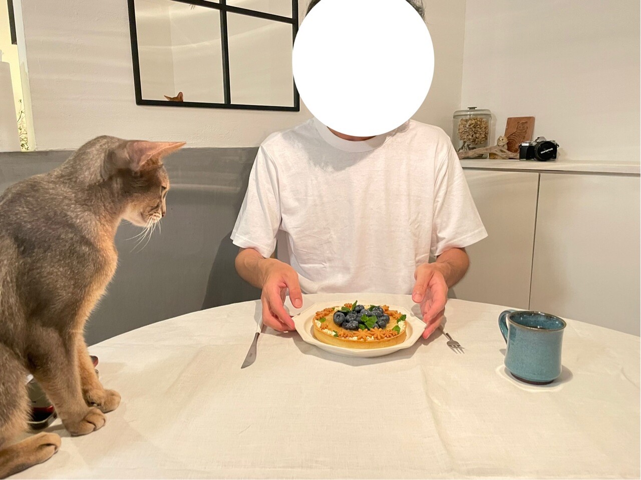 なに食べてるのかな?って思ってるのでしょうか🍰