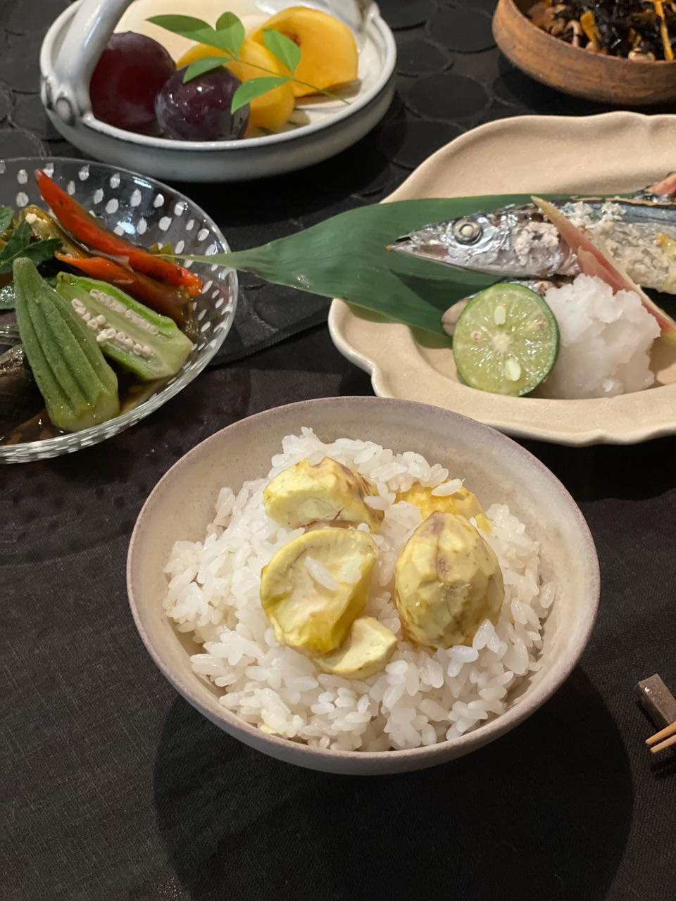 栗に秋刀魚に、すっかり秋めいてきた食卓でした🍁