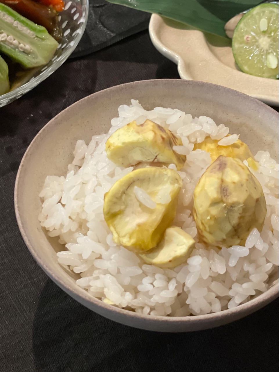 今日は、暑い日だったんですけど、産直で栗を買ったので栗ご飯にしました。