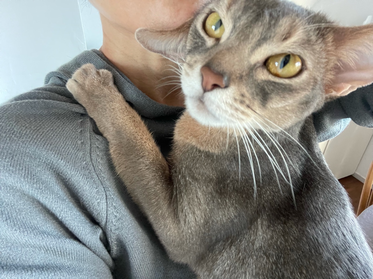 しがみついきて、右左とほっぺたをこすりつけてくるのが嬉しいです(*´ω`*)