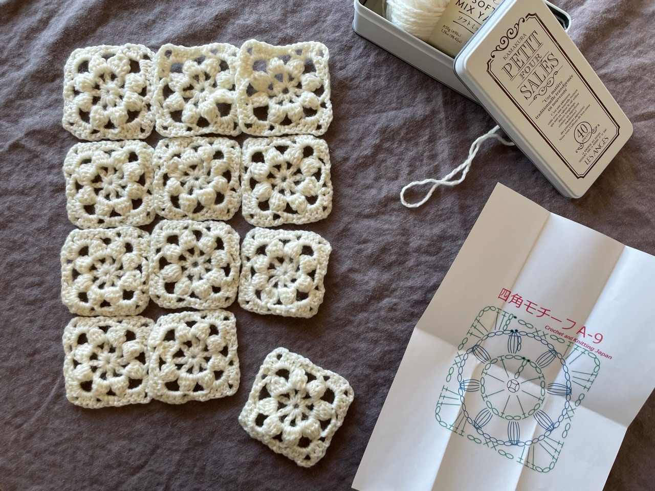 編み物は久々すぎるので、手始めにモチーフ編みをしてみました。