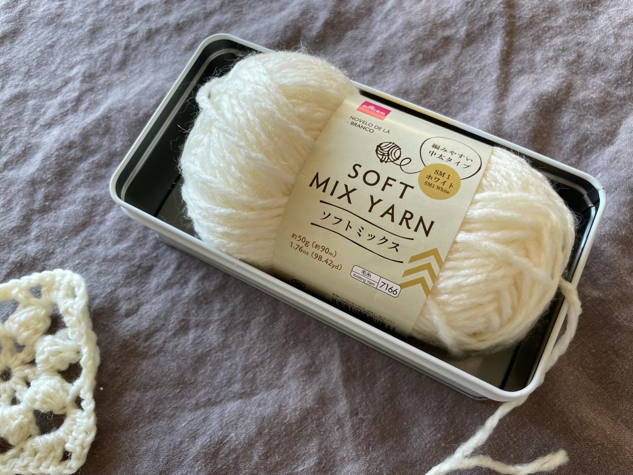 ちなみに、毛糸はダイソーで買った1玉100円のです。