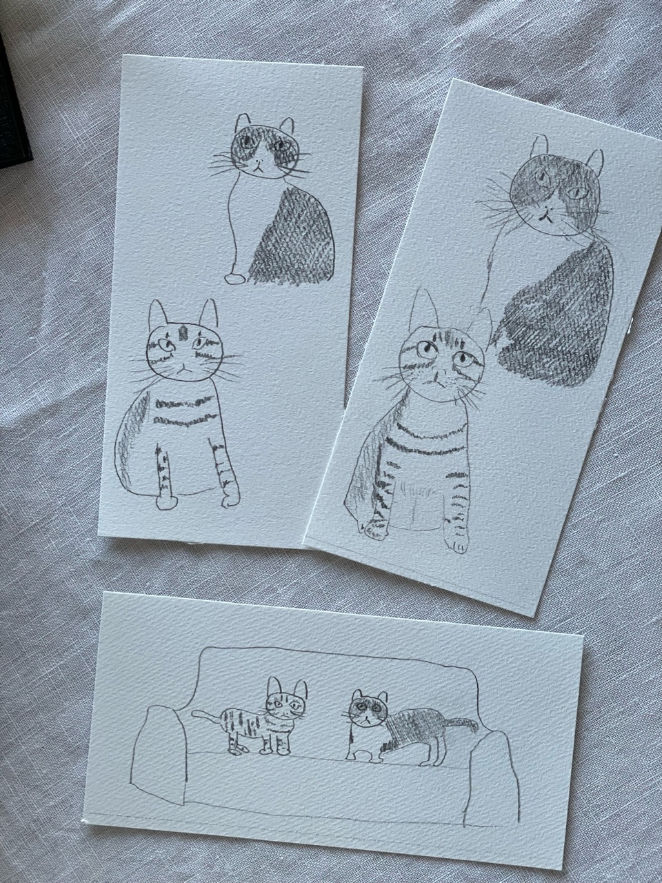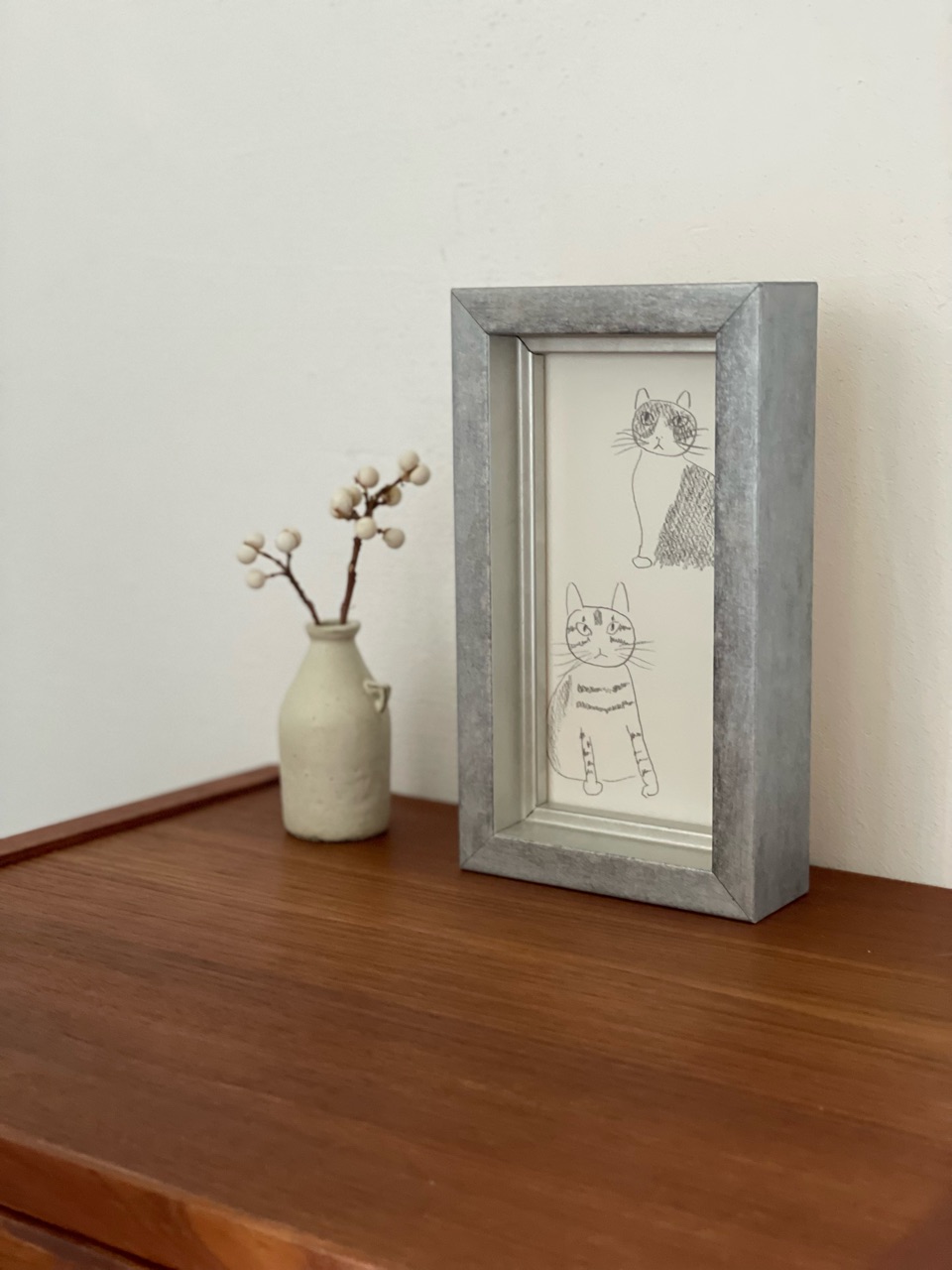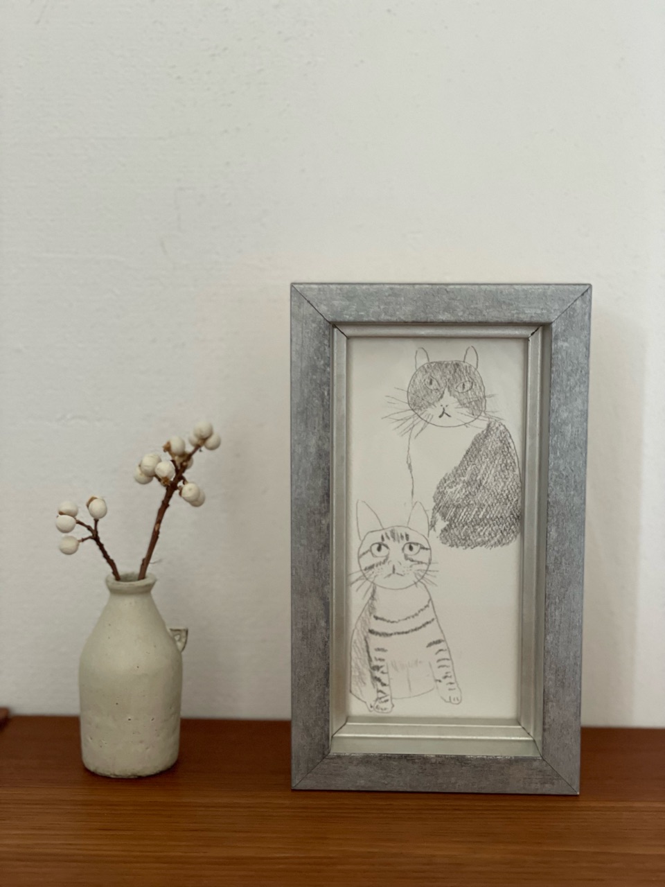 ご近所さんのおうちの2匹の猫ちゃんを描いてもらいました。