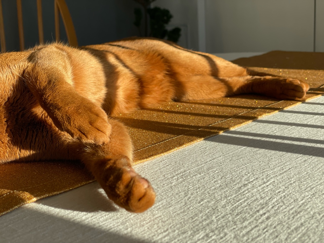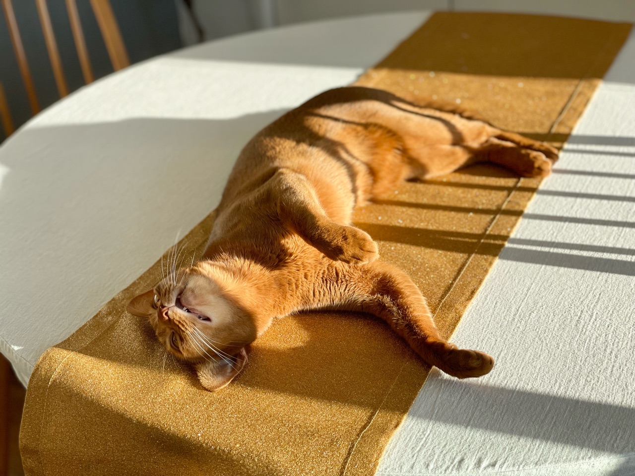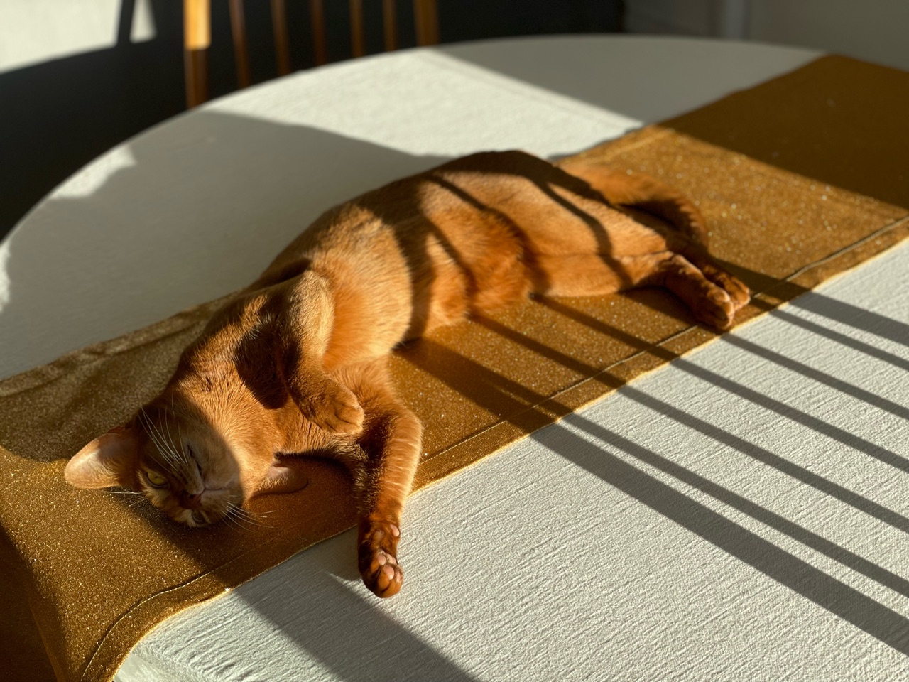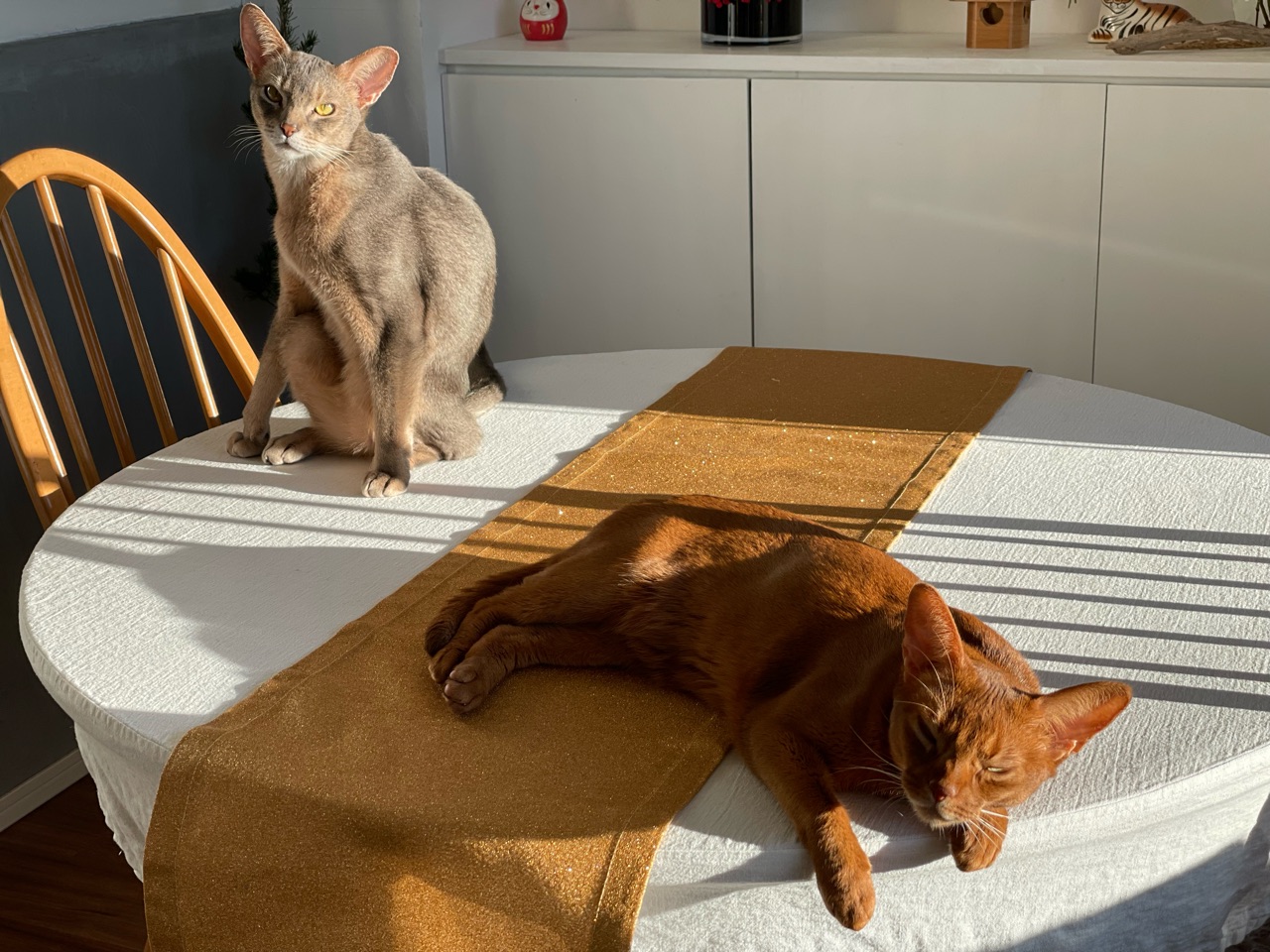 どこでゴロンしてるかと思いきや、テーブルかっ❗