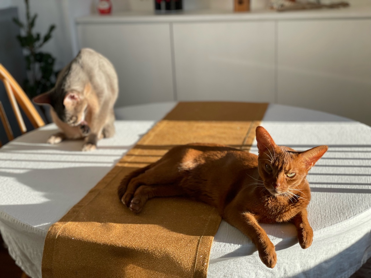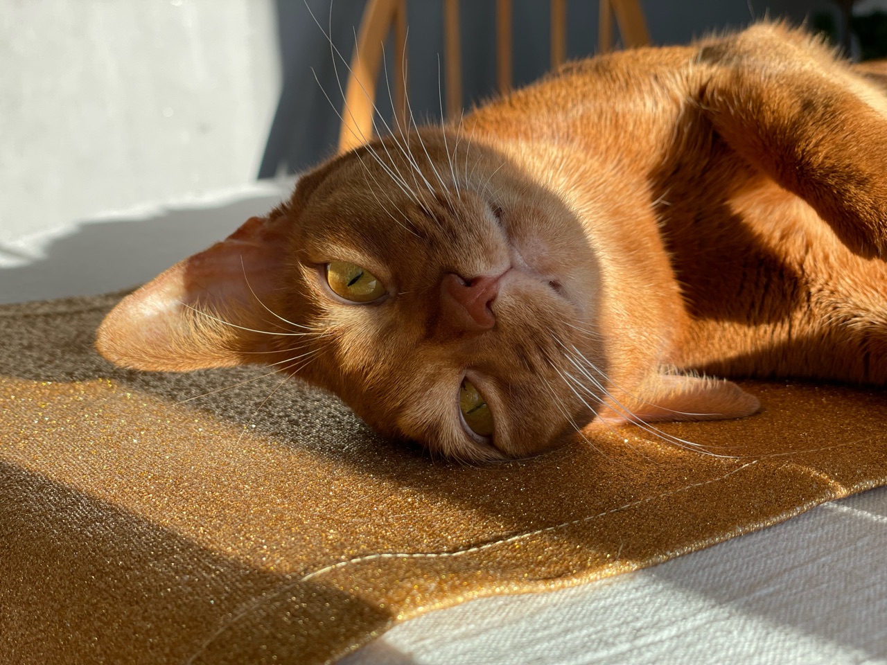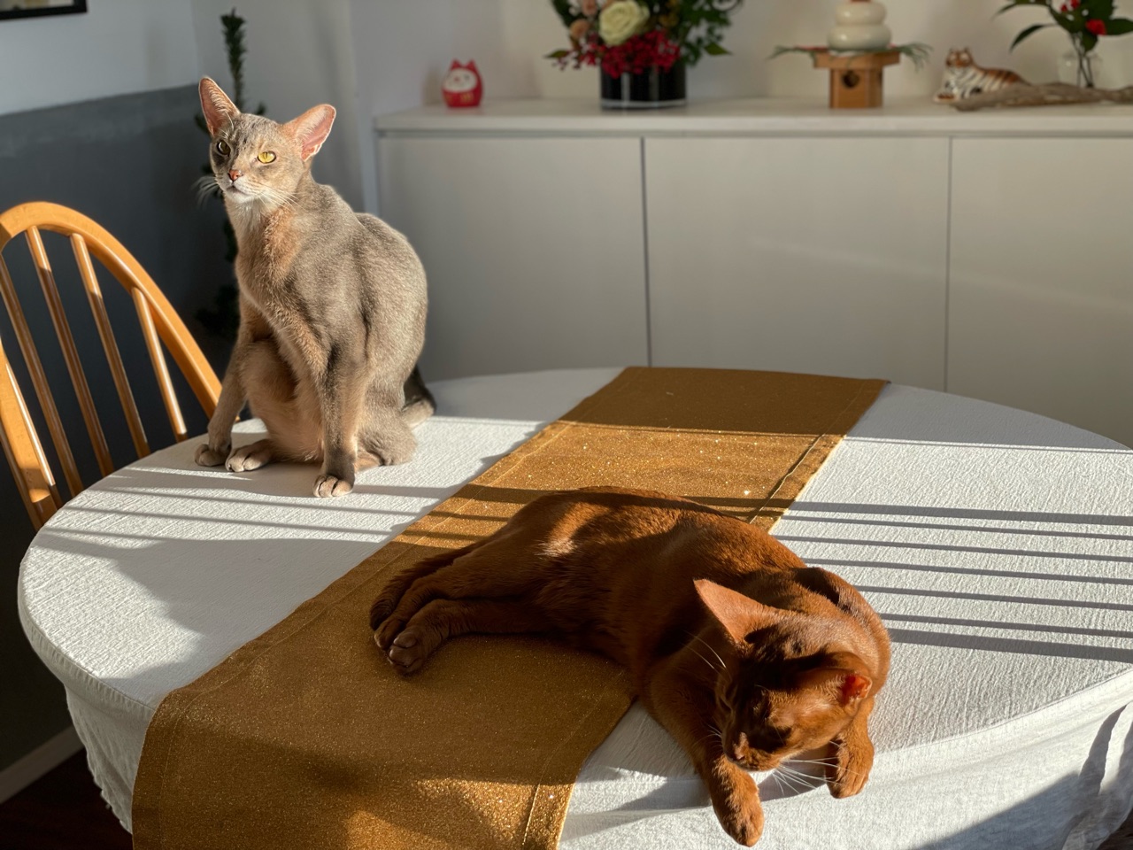 どこでゴロンしてるかと思いきや、テーブルかっ❗