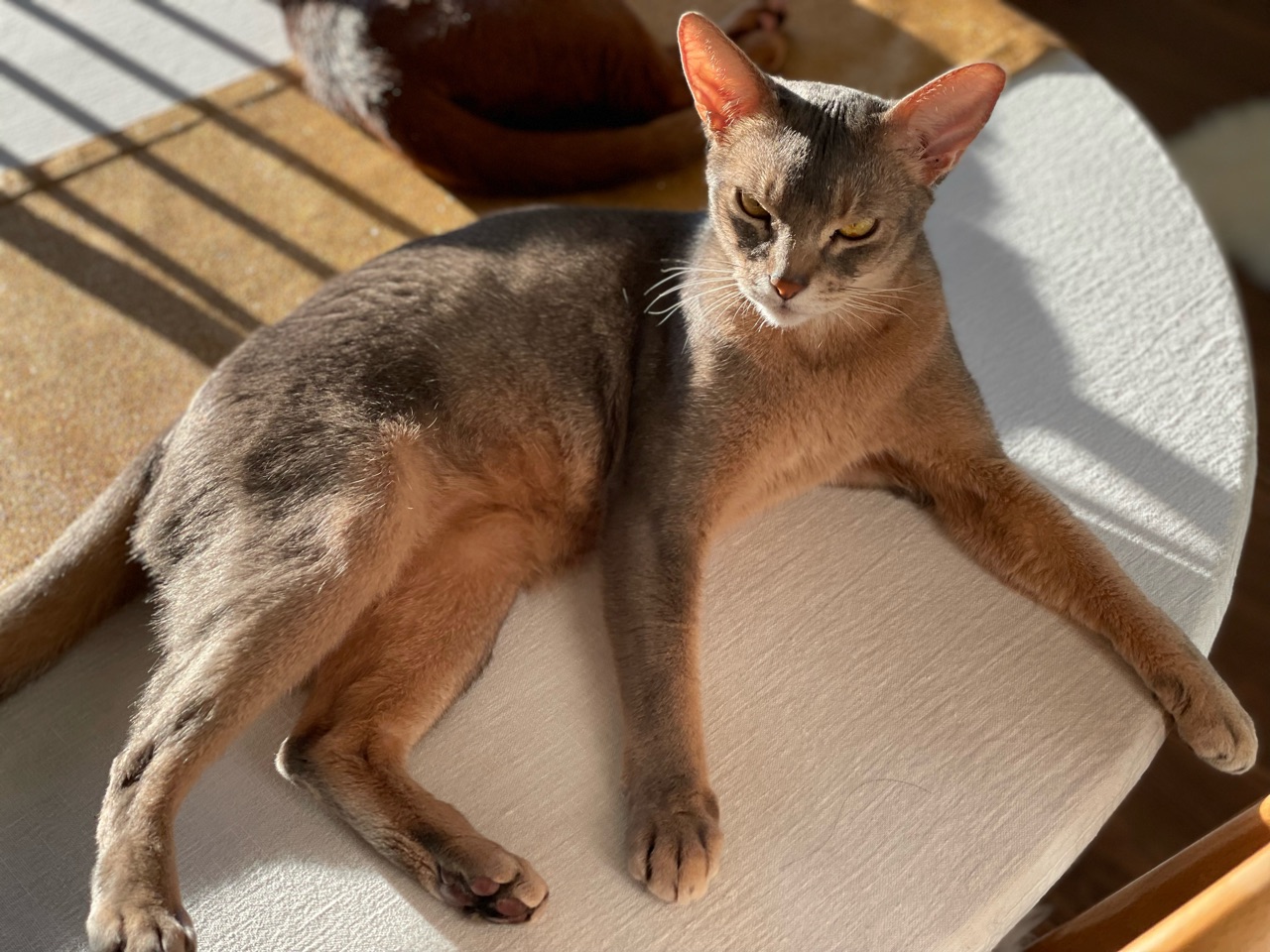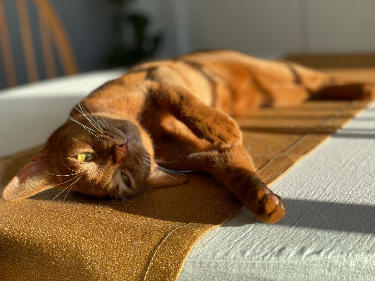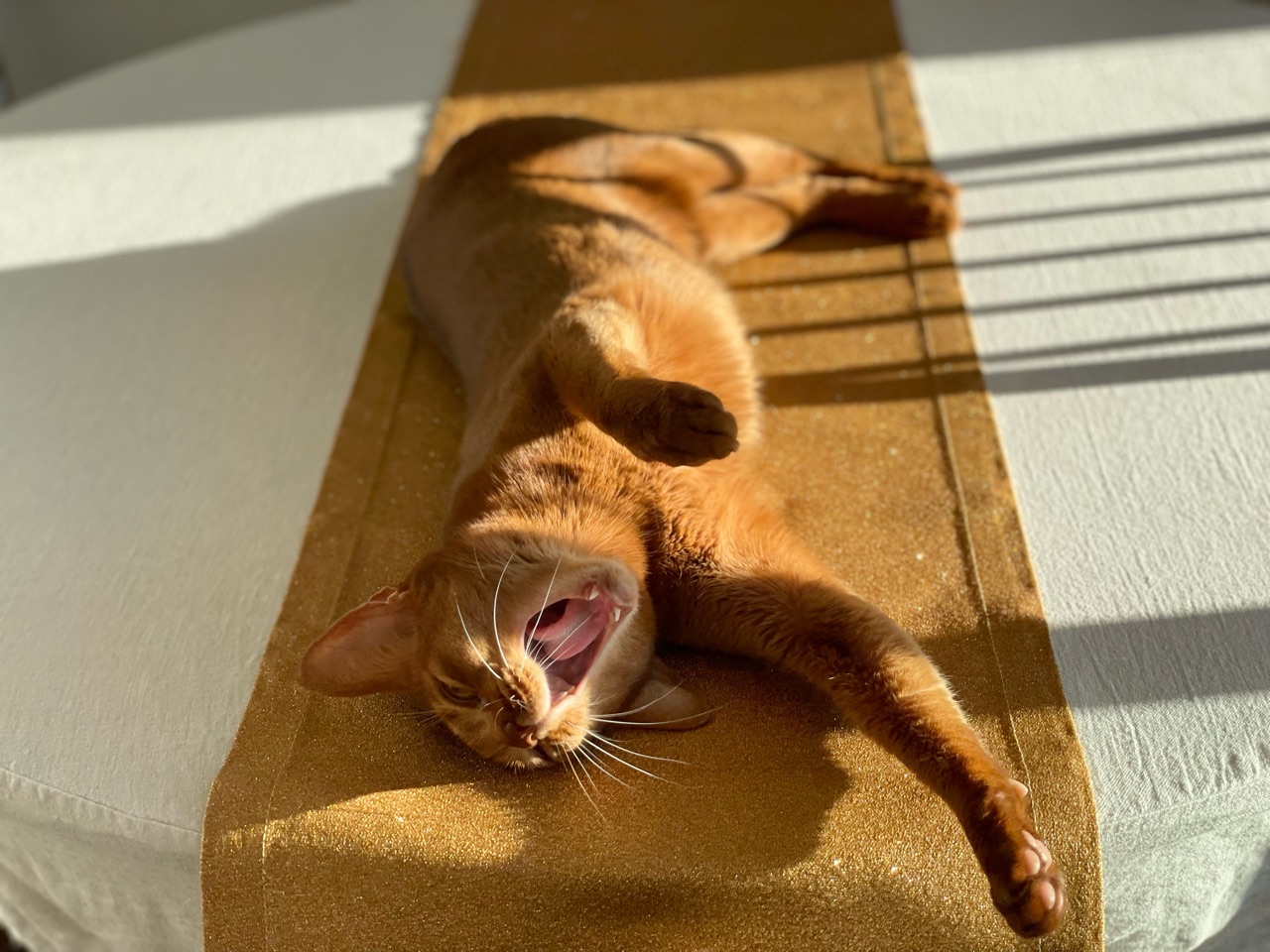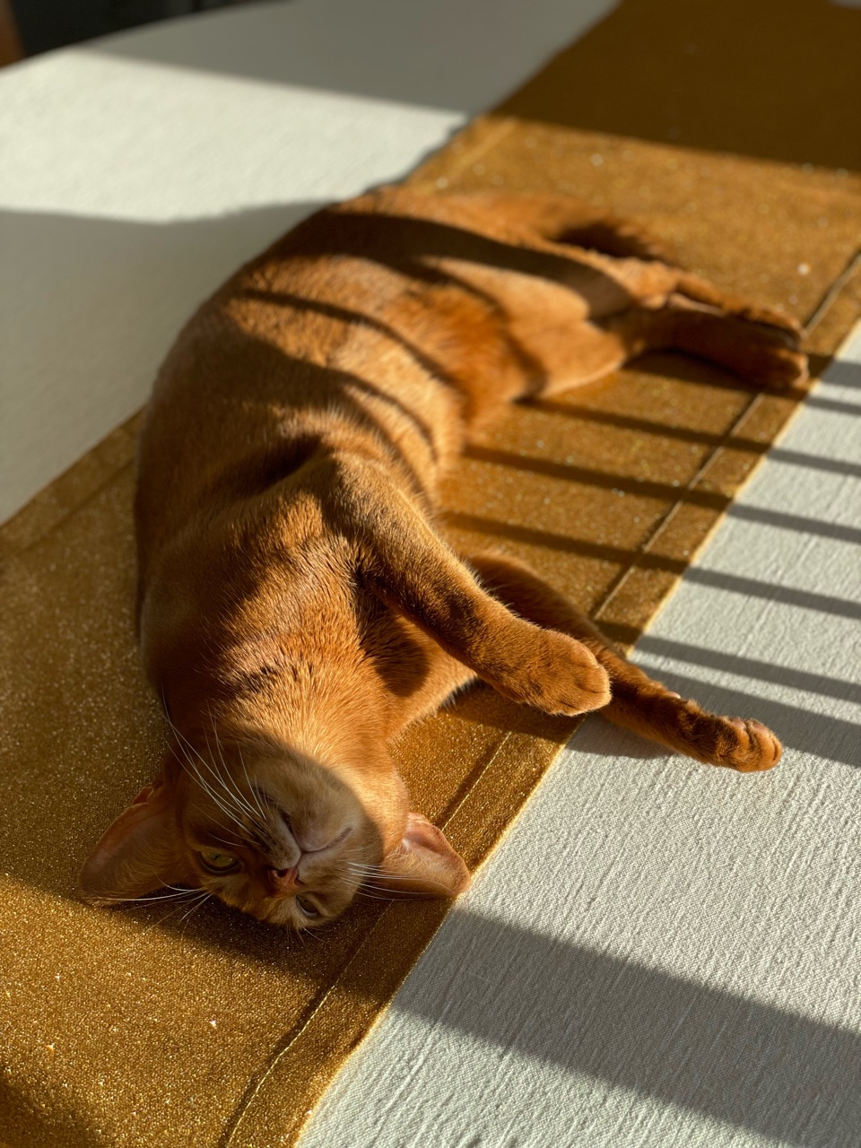 どこでゴロンしてるかと思いきや、テーブルかっ❗