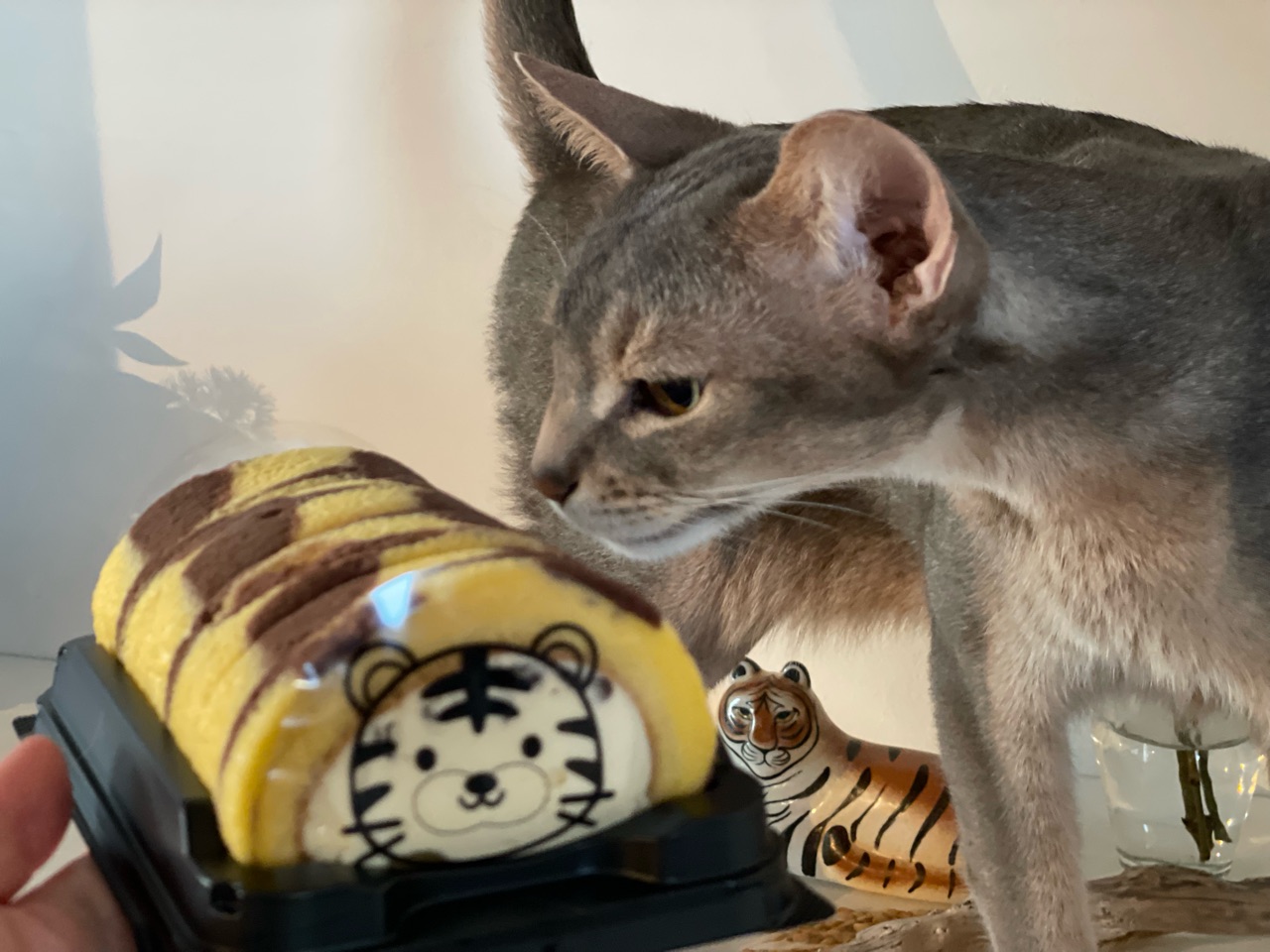 トラ柄のロールケーキをトラに見立てたパッケージがかわいい✨