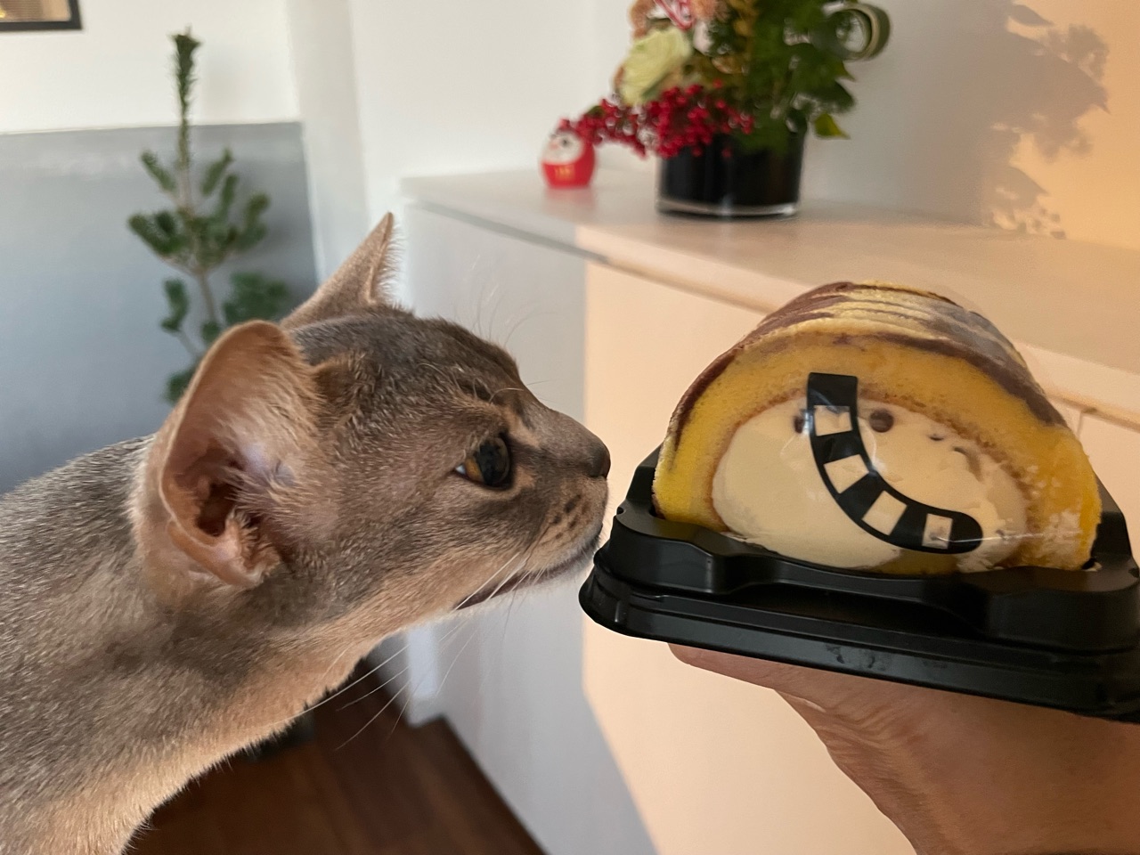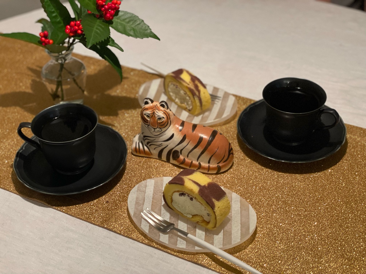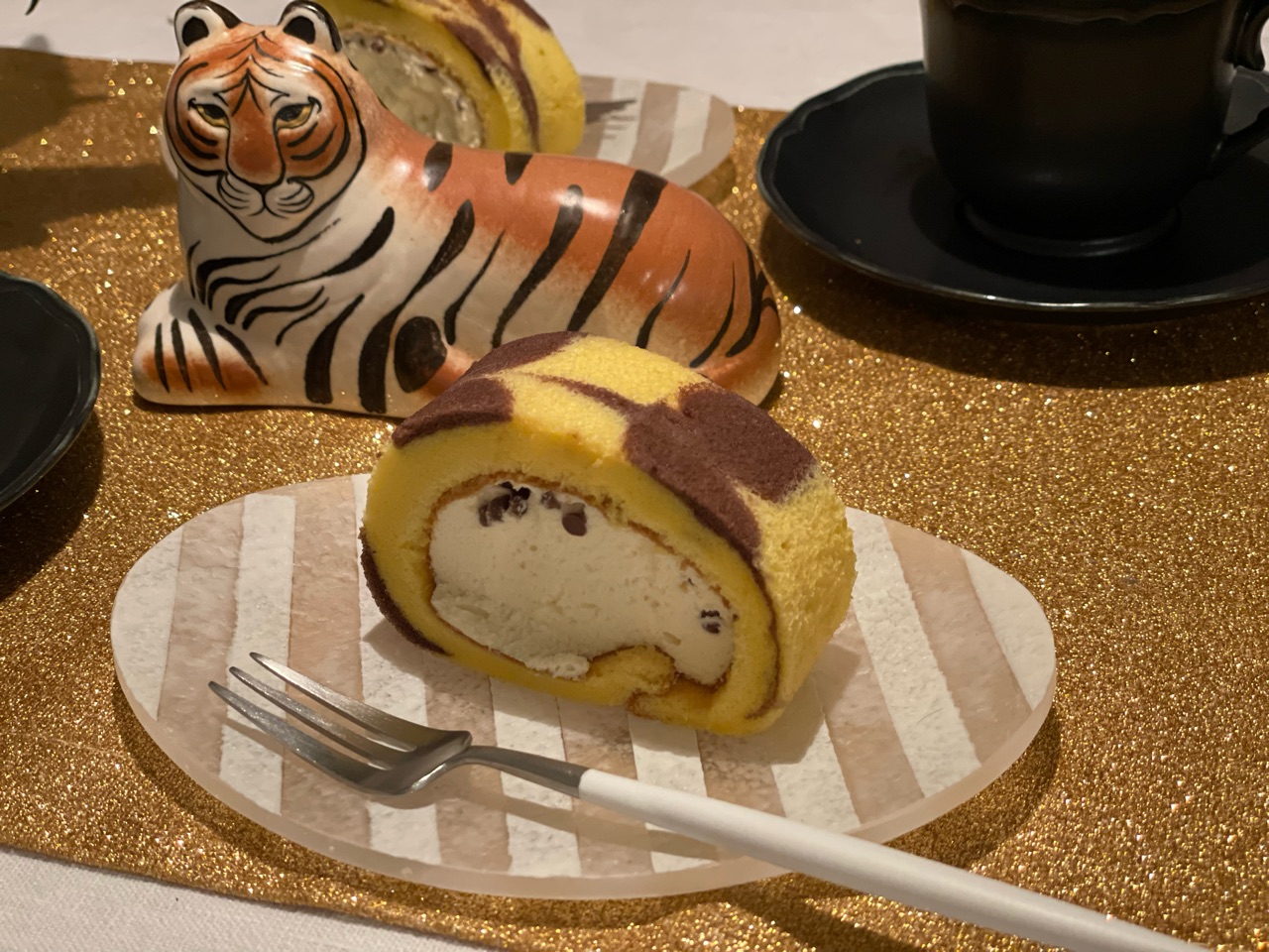 トラのロールケーキは、カニの夜ごはんの後にいただきました。
